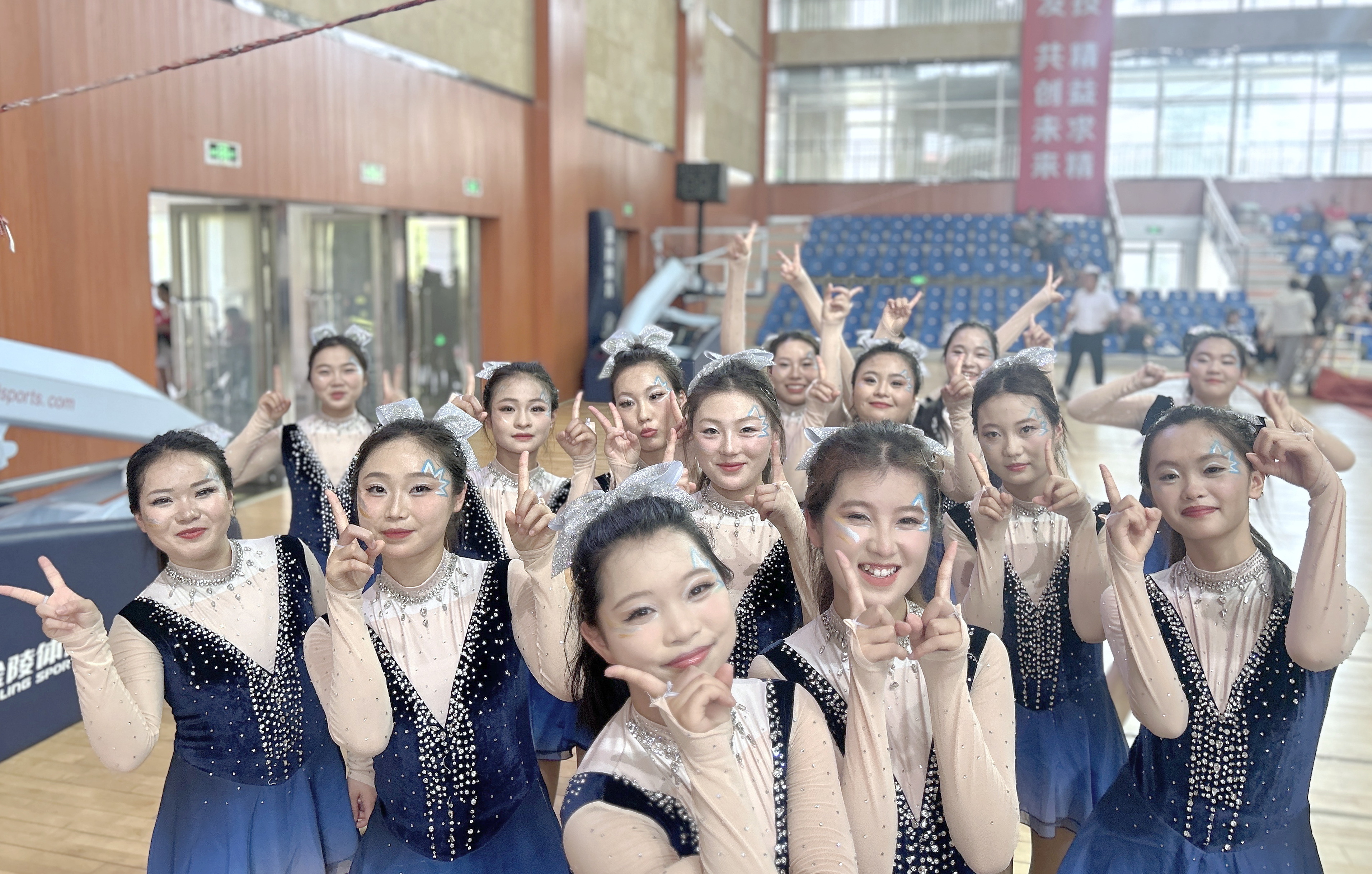 比赛现场,队员们身着整齐靓丽的服装,以饱满的热情和精湛的技艺,为观众带来了一场视觉盛宴。她们动感的舞姿、默契的配合以及对爵士啦啦操独特的诠释,赢得了现场评委和观众的阵阵掌声与喝彩。每一个跳跃、每一次旋转、每一个表情,都展现出队员们扎实的基本功和对啦啦操运动的热爱。