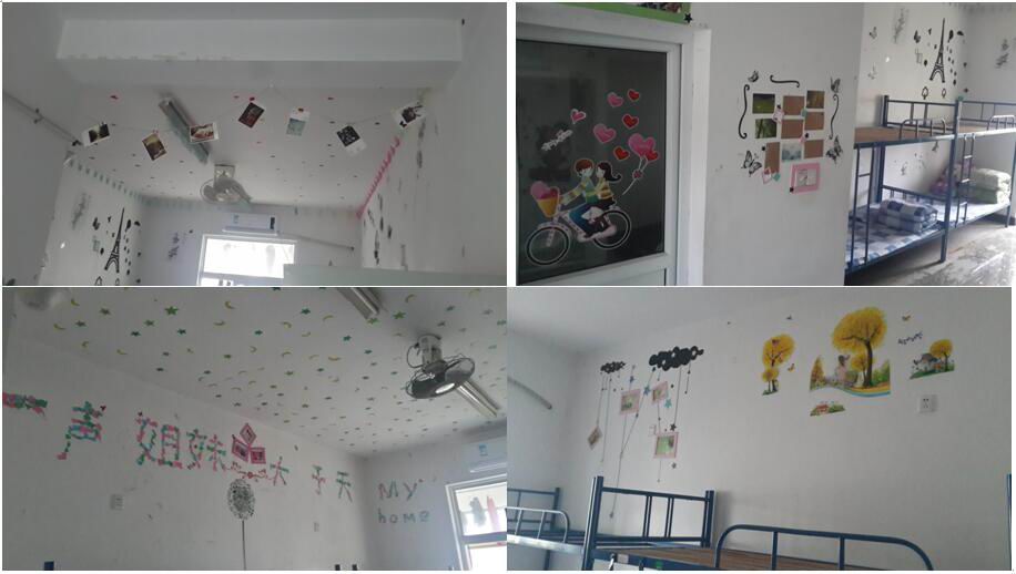 学生离家后容易产生孤独、消极情绪,宿舍则是建立新友谊,发现新知识,学会独立生活的地方,寝室文化的好坏,将直接影响每个学生的学习、生活、甚至人格的形成。学生们在文明宿舍评比中,精心布置装扮自己的宿舍——一条条励志标语、一张张精美壁画、一幅幅生活剪影……营造出浓浓的“家”的氛围与感动。