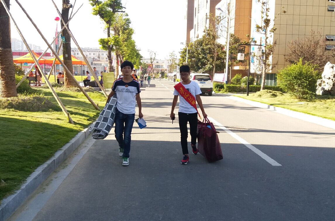 瞧!那些忙碌穿梭的身影……本次迎新工作可爱的志愿者们分布在各个关键接待点。有的人去汽车站接待并帮助老师做引导和维持秩序,每一趟车一到站,新生和家长一下车,众多的志愿者马上微笑着迎上去:“你们好,欢迎来到学校”,并抢下手中沉重的行李;有的人驻扎在校园为新生家长提供咨询服务和报到指南,他们热情主动地引领学弟学妹们安排住宿、参观校园环境,主动帮着提行李、回答新生及家长提出的各种问题,一路谈笑风生。志愿者们礼貌周到的服务很快消除了新生初来乍到的陌生感,一名自己来报到的新生说:“从车站到进校园,热心的学长们就带着我缴费、领物品,真是太亲切了”!一位来自山东的家长表示:“一开始担心孩子不适应新的环境,但是优美的校园环境、热情友爱的学长们打消了之前的顾虑”。