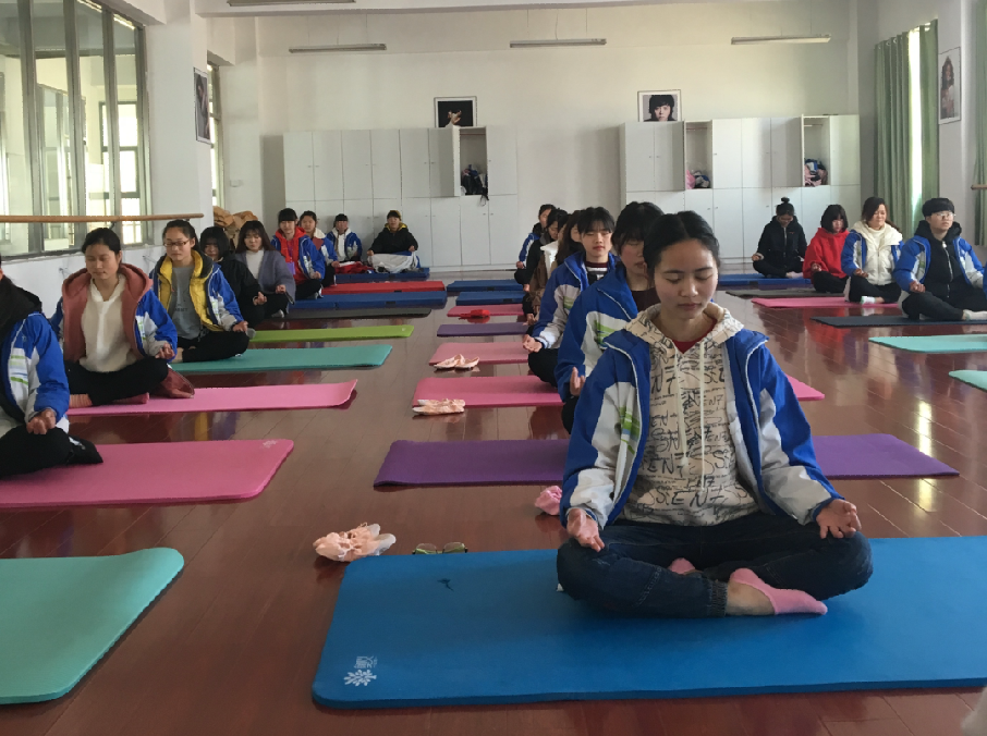 同学们练习瑜伽,不仅舒展了肌肉线条,匀称了体型,同时还起到了安神静心的功效,对加强身体的柔韧性,提高肢体的支配能力有很好的辅助作用。