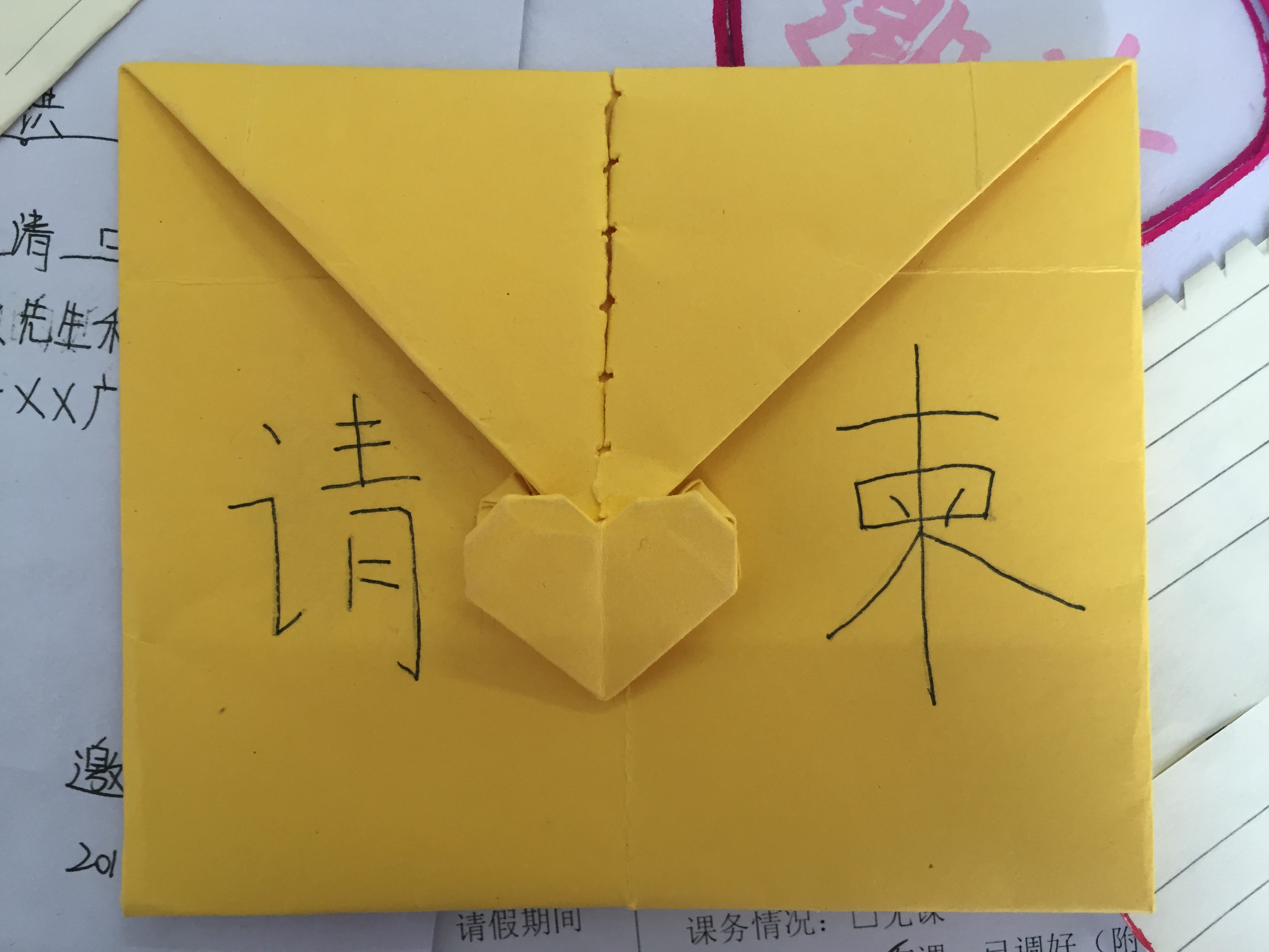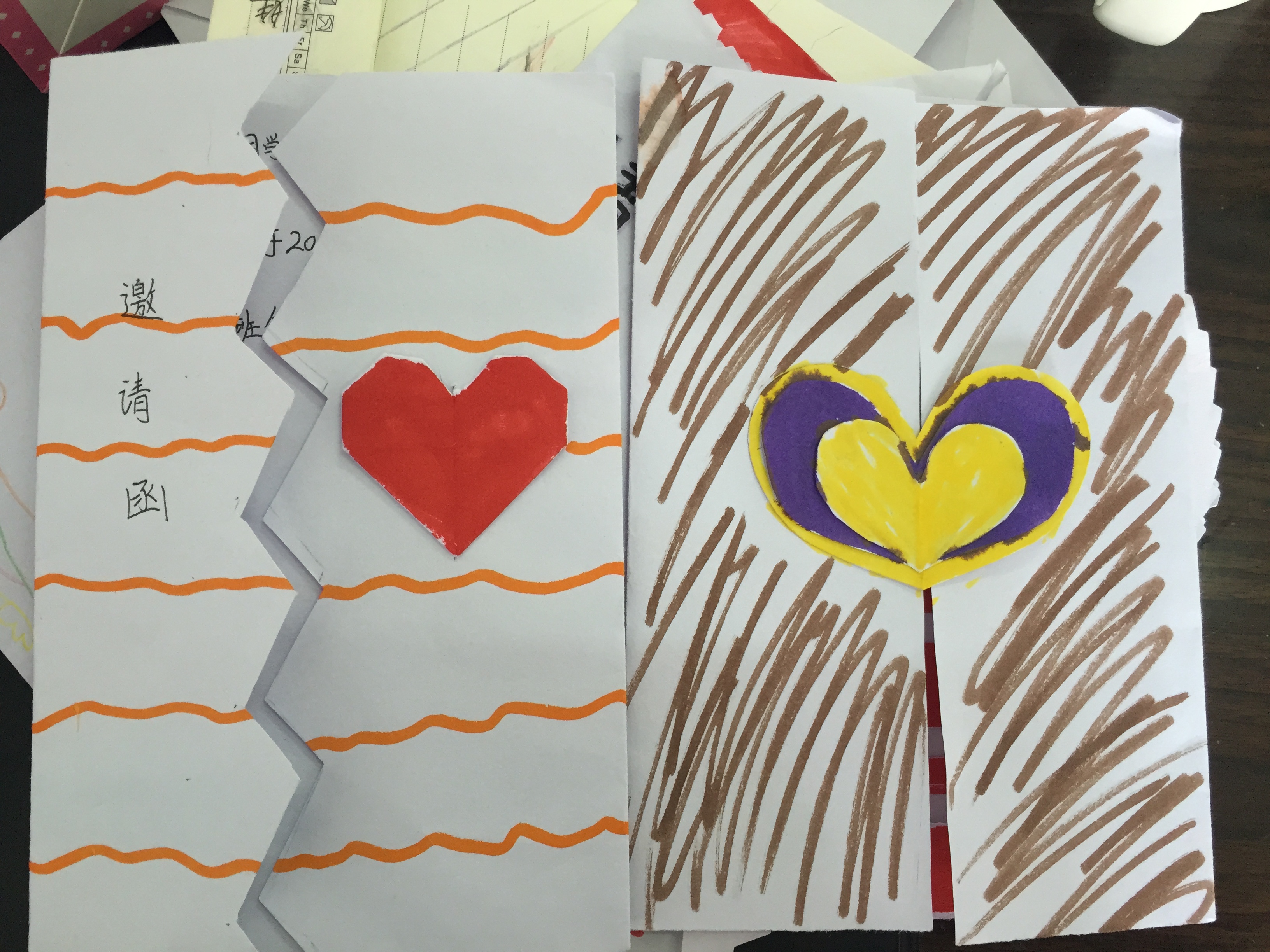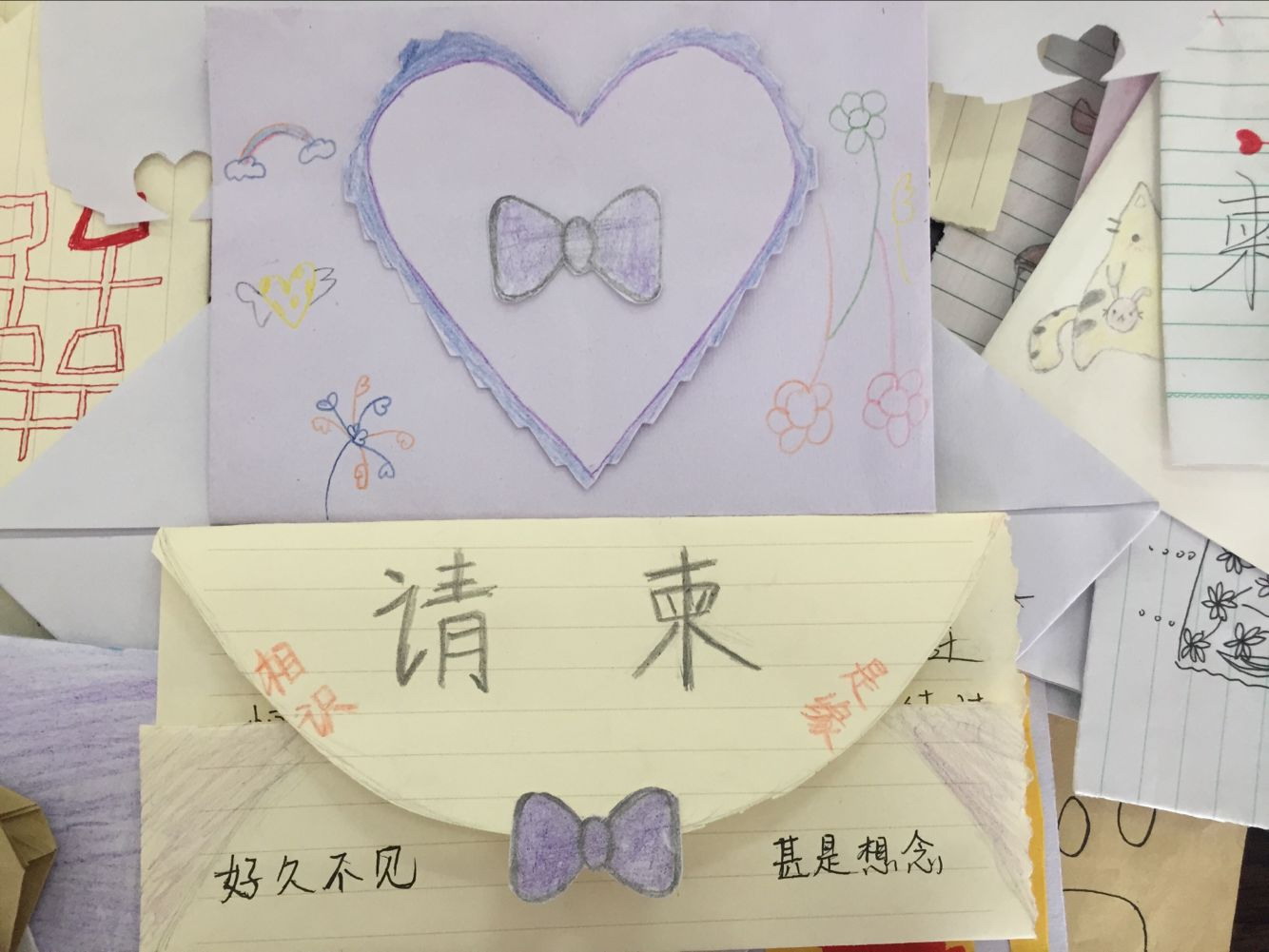 有的同学设计信封式请柬,将请柬和信封融为一体,信封封面精心设计,或是巧妙的开封,或是寄语独特,或是出众的色彩搭配,或是在款式和装帧设计上美观、大方、精致,让受邀者收到请柬的第一时间就感受到了设计者的匠心独运与高超才华。也有的同学们别出心裁,根据自己设计的主题,为卡片搭配不同的装饰物。一个小心形,一朵小干花、一只小纸鹤都能成为了请柬的点睛之笔。