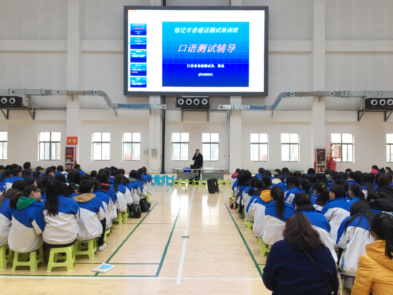 普通话培训主讲人蔡亮和马丽华老师是江苏省普通话水平测试员,有多年普通话教学经验,讲课生动形象,内容引人入胜,参训学生人人认真听课,主动参与课堂小测试,积极配合。培训中,蔡亮老师讲授了普通话测试系统的使用方法和注意事项,重点对上声变调、轻声、平翘舌音、儿化音以及朗读技巧等进行了详细的讲解,通过示范读、领读、点名读等方式不断地与同学们进行互动,让同学们有了更多练习、改进的机会,受益匪浅。