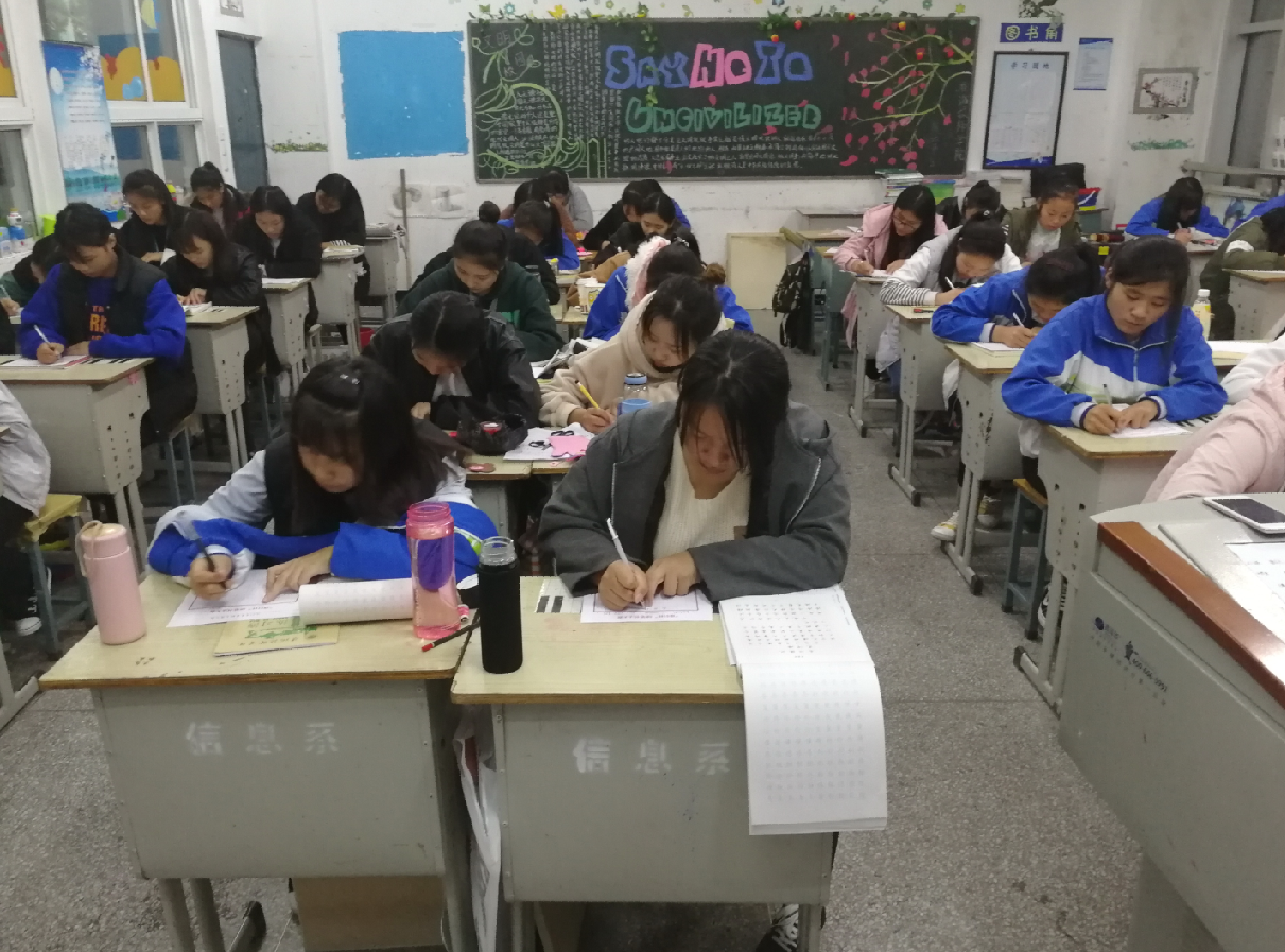 商贸服务系始终注重中国传统文化的传播和宣扬,因此,本次“康轩杯”硬笔书法大赛得到了商贸服务系全系师生的重视。系部三个年级,五个专业,千余名学生、老师参加了本次比赛。大赛由南京康轩文教图书有限公司协办,分为教师组和学生组,学生组初赛全体学生共同参与,最终每班由学生选举出两名优秀代表进入决赛,决赛将产生一等奖20名、二等奖32名、三等奖40名;教师组不设预赛,最终将产生一等奖5名,二等奖8名,三等奖10名。