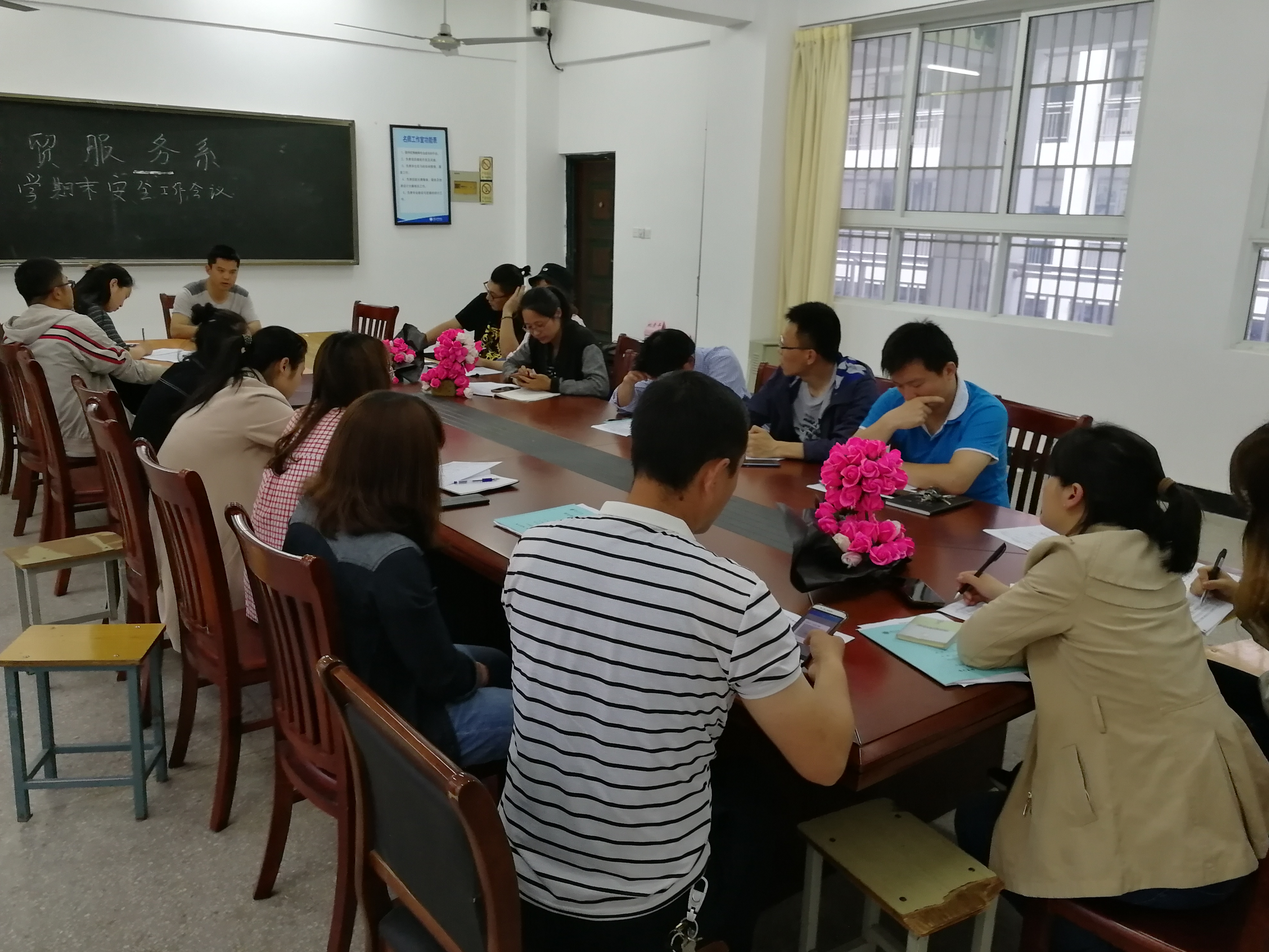 为了加强系部安全管理,保障期末各项工作的有序进行,6月21日晚,商贸服务系在会议室召开期末安全工作会议。会议由商贸服务系负责人梁春阳主持,系部全体班主任参加会议。