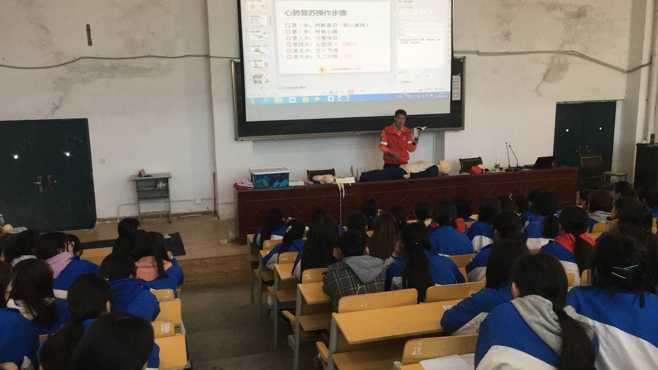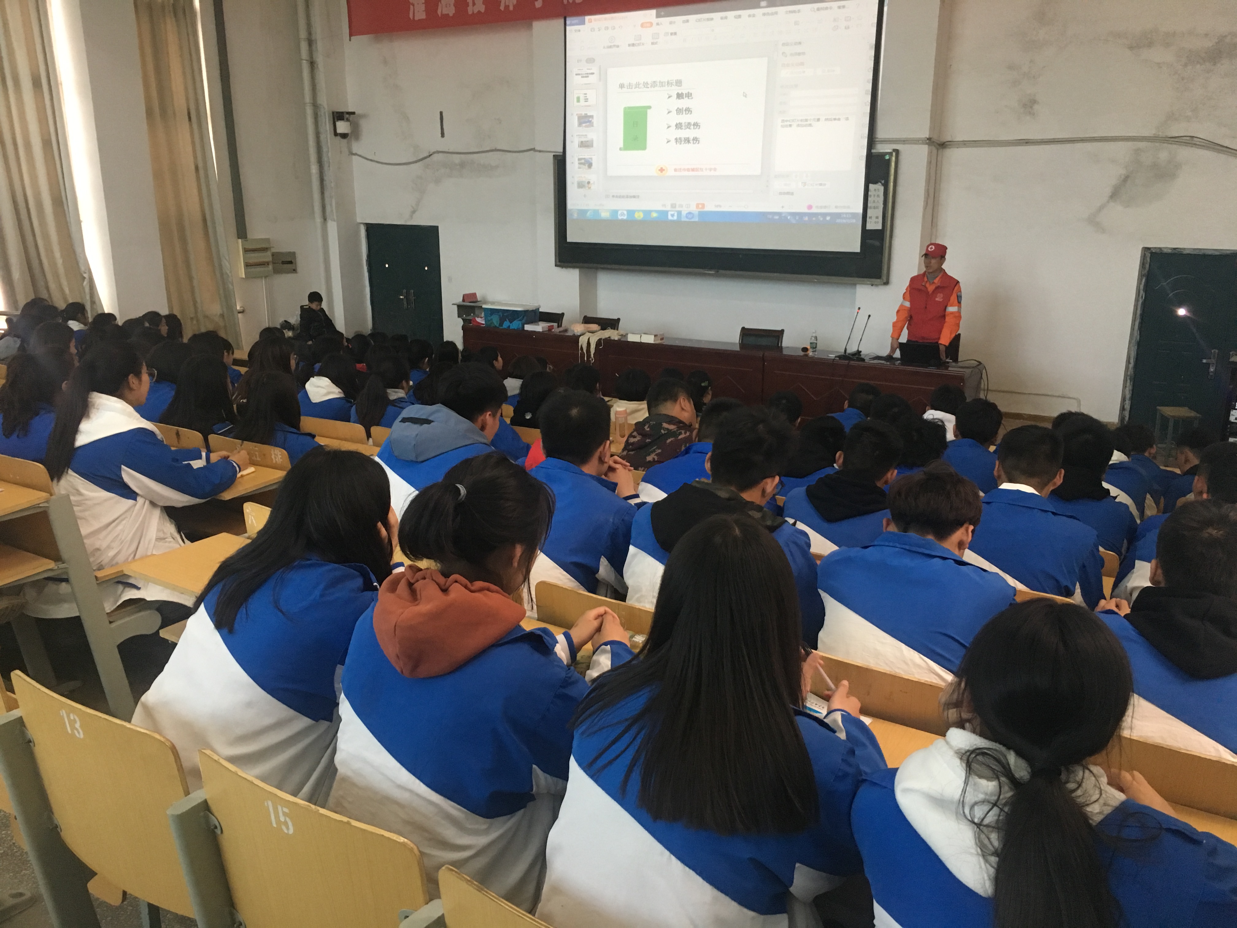 为响应国家职教改革方案,落实“1+X证书”方案,3月28日,商贸服务系特邀宿城区红十字会救护员到校开展急救证考辅工作。商贸服务系17级高铁乘服专业、司法安检专业全体学生参加培训。