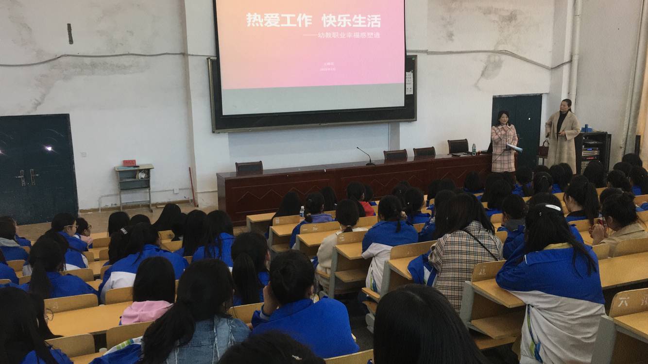 为进一步帮助幼教专业学生了解自己,提高职业认同感,获得职业幸福感,做幸福的善美教师,4月3日下午,商贸服务系邀请幼儿教育专家到我院开展了专题讲座。系部全体幼师专业学生参加讲座。