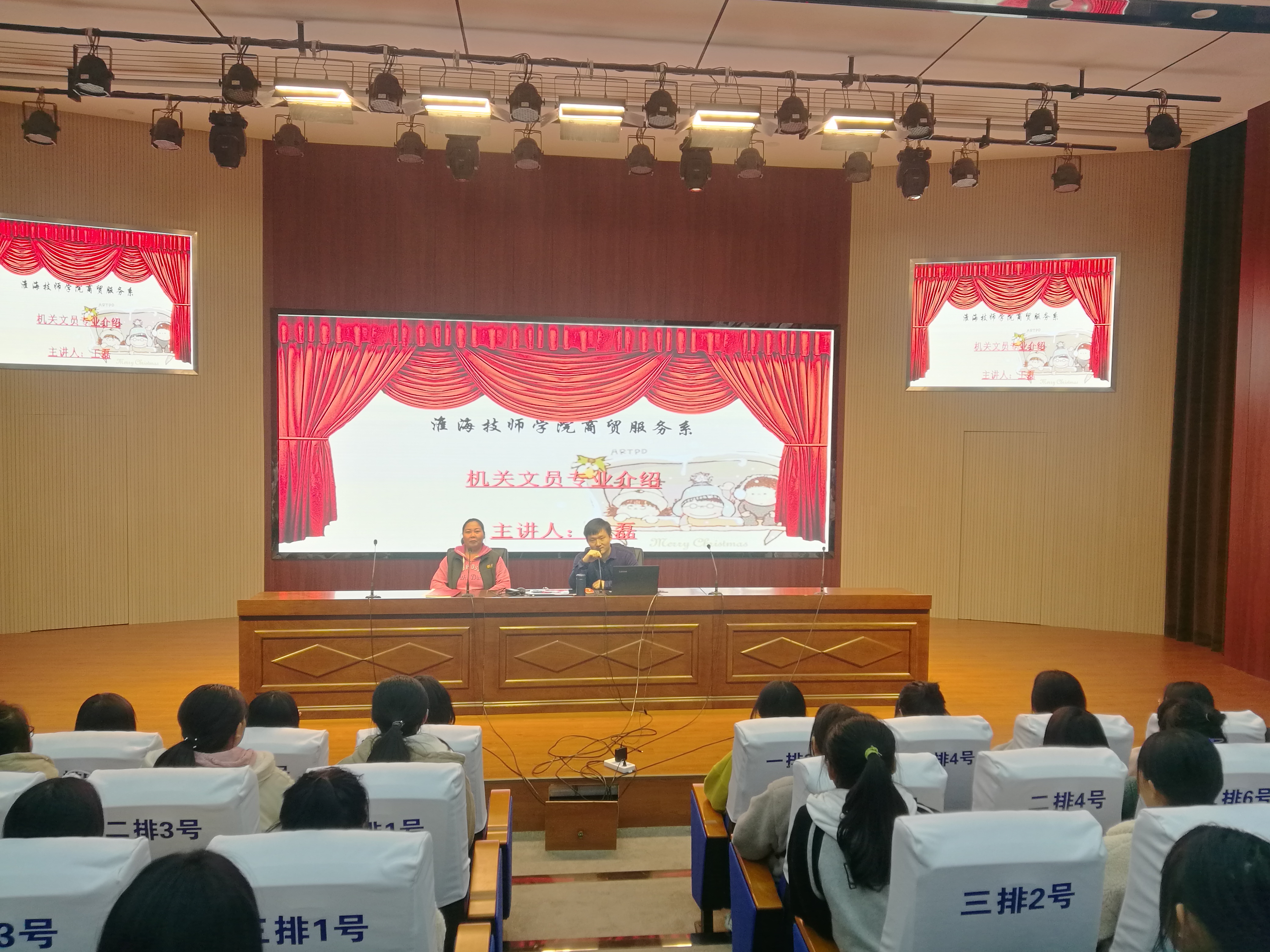 为进一步提高新同学对所学专业的认知度,明确学习目的,11月13日晚,商贸服务系在蓝海剧场举办了机关文员、高铁等特色专业宣讲专题讲座。19级高铁、文员专业等共100余名学生代表参加讲座。