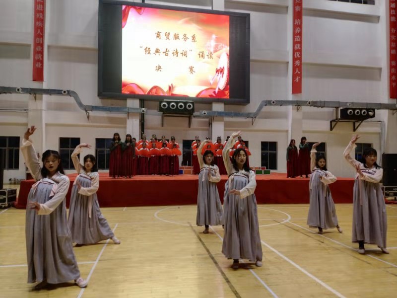 为了增强学生对中国传统文化的了解,传承祖国丰富的文化瑰宝,激发学生对古诗词的热爱,12月18日晚,商贸服务系在学院体育馆举行“经典古诗词诵读”大赛决赛。