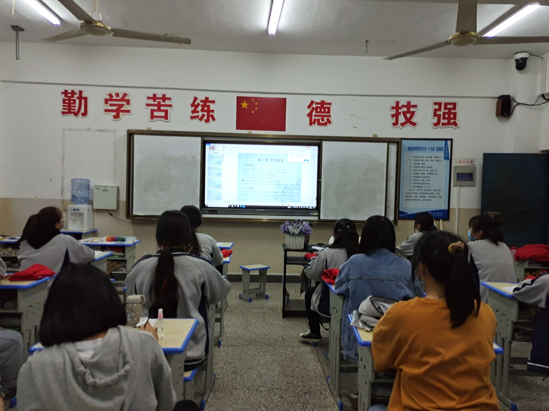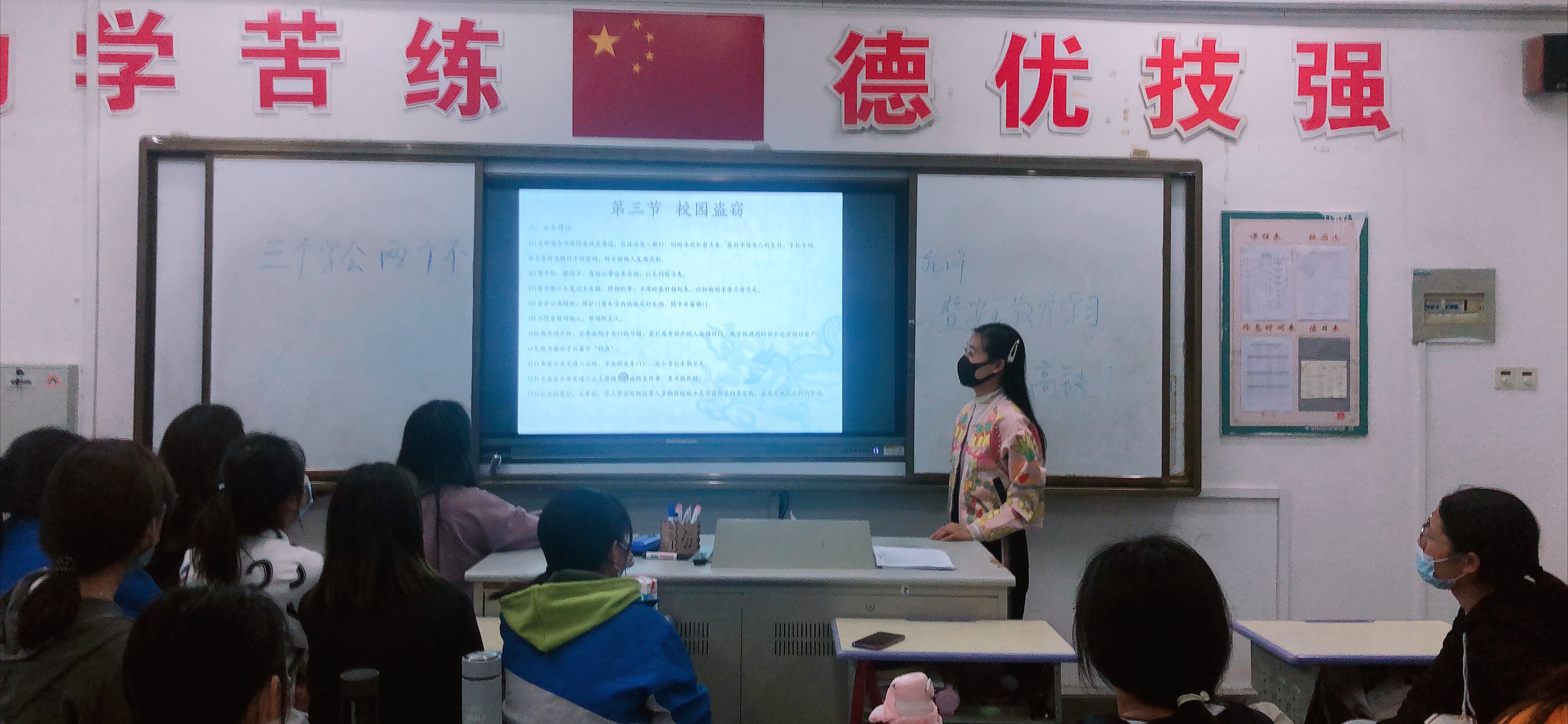 活动中,各班班主任老师先是就校风和学风建设,提出建议和要求。要求同学们严格自我要求,团结友爱,刻苦学习,努力上进,力争成为品学兼优的淮海人。接着,班主任组织同学们观看“文明校园公开课”视频内容,同学们聚精会神地观看精彩的视频。视频内容由系部结合学院有关规定精心准备制作,紧扣文明校园这一主题,内容涉及校园欺凌、校园盗窃案例以及“三个学会两个不允许”等相关内容,全方位多角度对学生进行文明校园的主题宣讲教育。