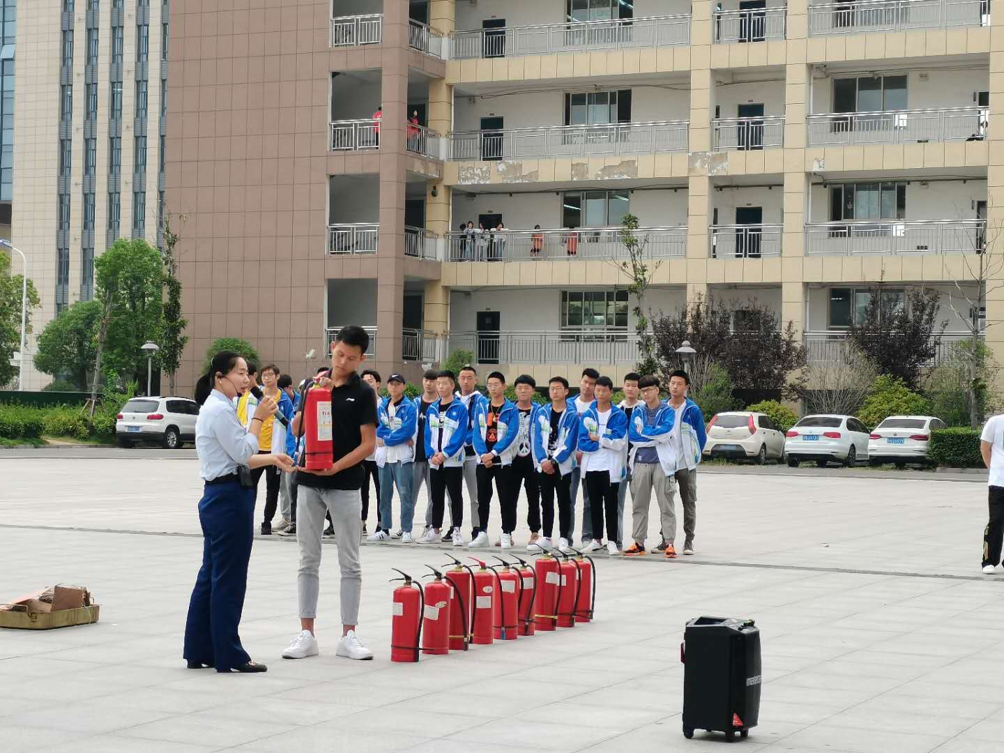 活动特邀宿迁消防大队消防警官现场为全系师生详细讲解消防基础知识、突发火灾的处置、火灾逃生方法、灭火器等消防类用品的使用方法等,并指导同学们使用消防灭火器进行灭火演练。