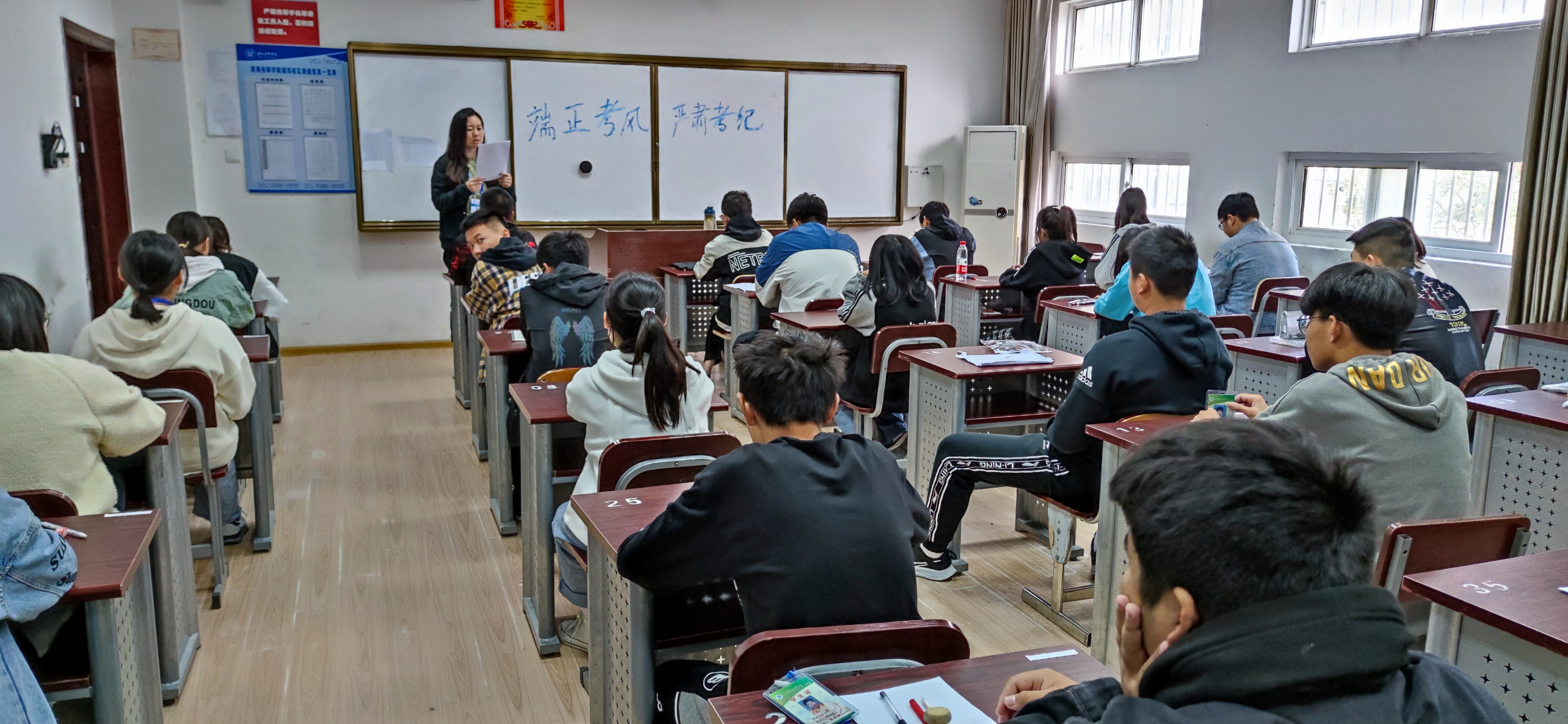 考试前夕,基础部积极组织开展考务会议,严格要求监考老师和考务人员遵循考试流程,遵守监考的相关纪律,各司其职,通力合作,以出色地完成本次考试任务。开考前,监考老师宣读考场纪律要求,明确所有考生要严肃考纪,端正考风。考试过程中,系部领导频繁巡查,教师严格监考,学生认真答题,态度严肃,无违规违纪现象,考场秩序井然。