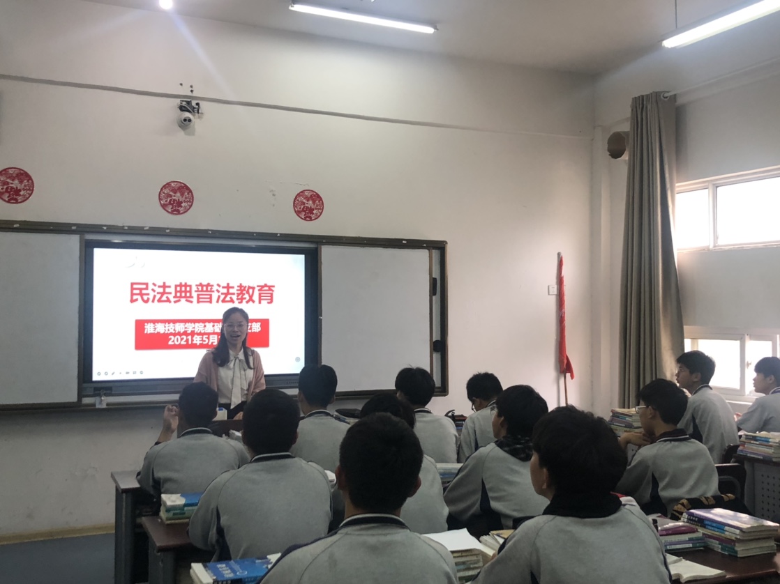 本次普法宣讲内容主要包括民法典编纂简介、民法典的作用及民法典看点简读三个部分,主讲教师在宣讲过程中穿插了与学生生活息息相关的事例,现场气氛热烈,学生收获满满,反馈良好。基础部党支部开展“民法典科普”志愿服务活动