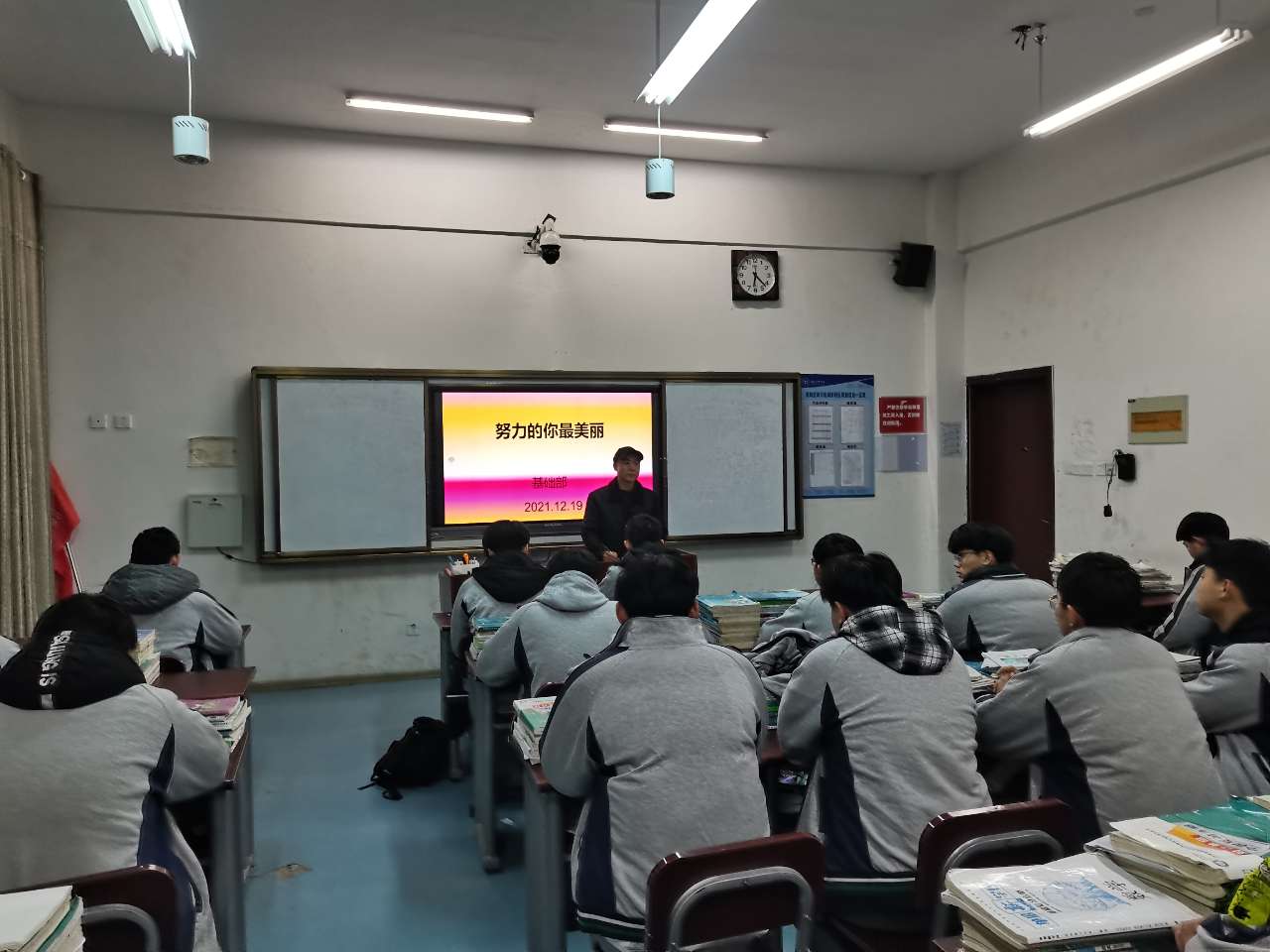 临近期末,为进一步鼓励学生,调动学生学习的积极状态和学习的信心,12月19日,基础部开展了“努力的你最美”主题班会活动。