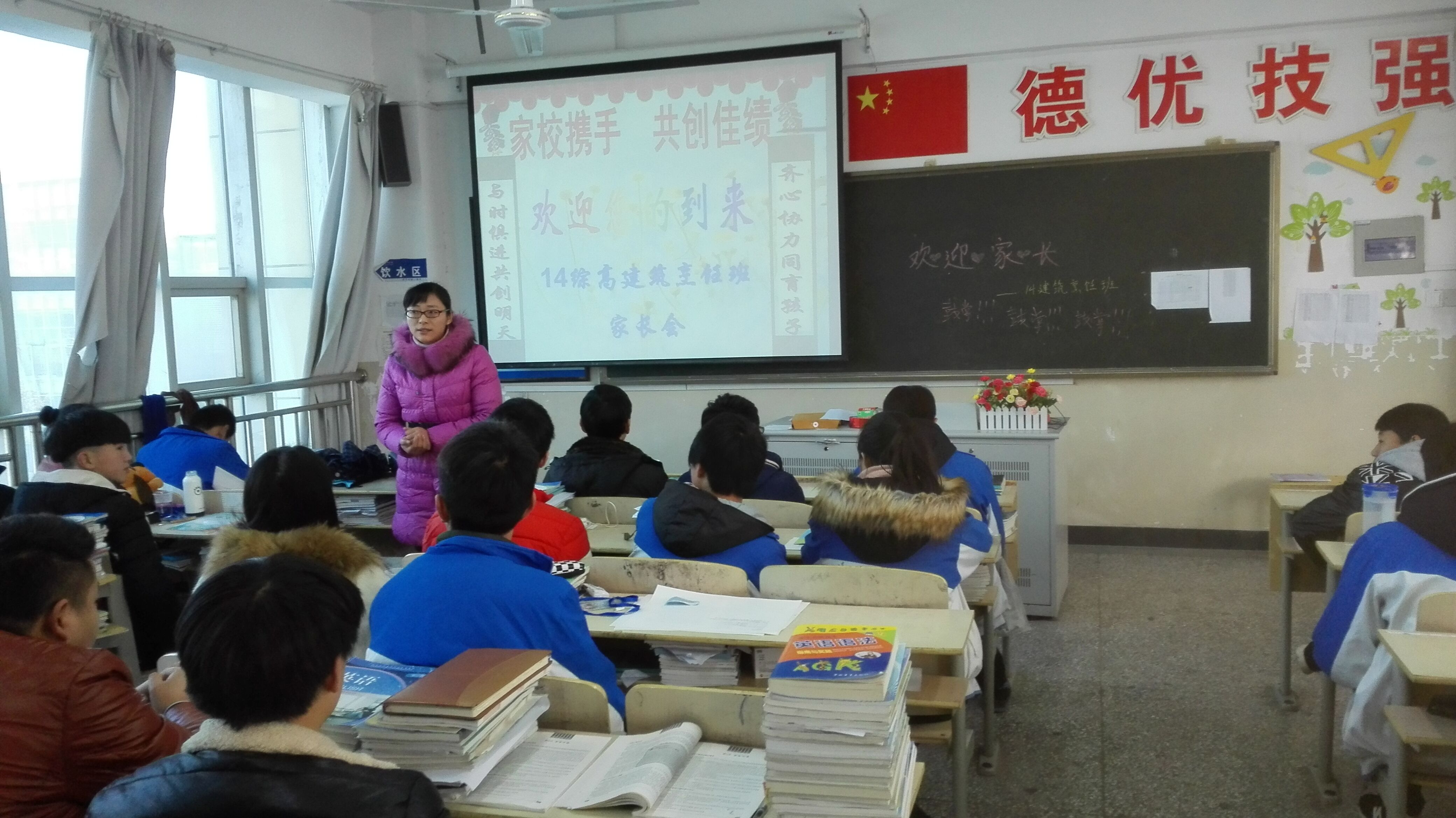 对于本次家长会,每个班都做了精心准备:干净整洁的教室里摆放着整齐的作业,精心制作的ppt上写有欢迎家长们的标语。家长们一走进教室,就感受到了一种融洽、和谐的氛围。
