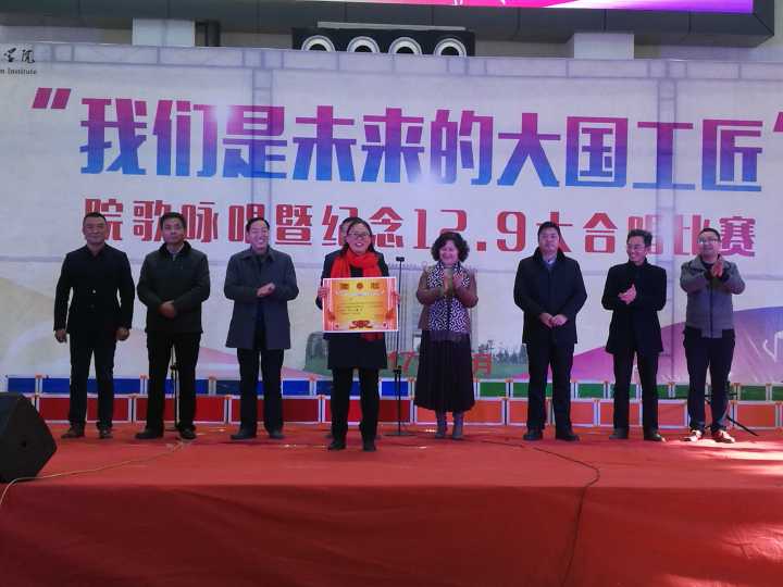 12月8日,“我们是未来的大国工匠”院歌咏唱暨纪念“一二·九”大合唱比赛决赛在学院体育馆举行。来自学院各系部13支代表队参加了比赛。综合高中部16综高财会班发挥出色,最终荣获比赛第一名。