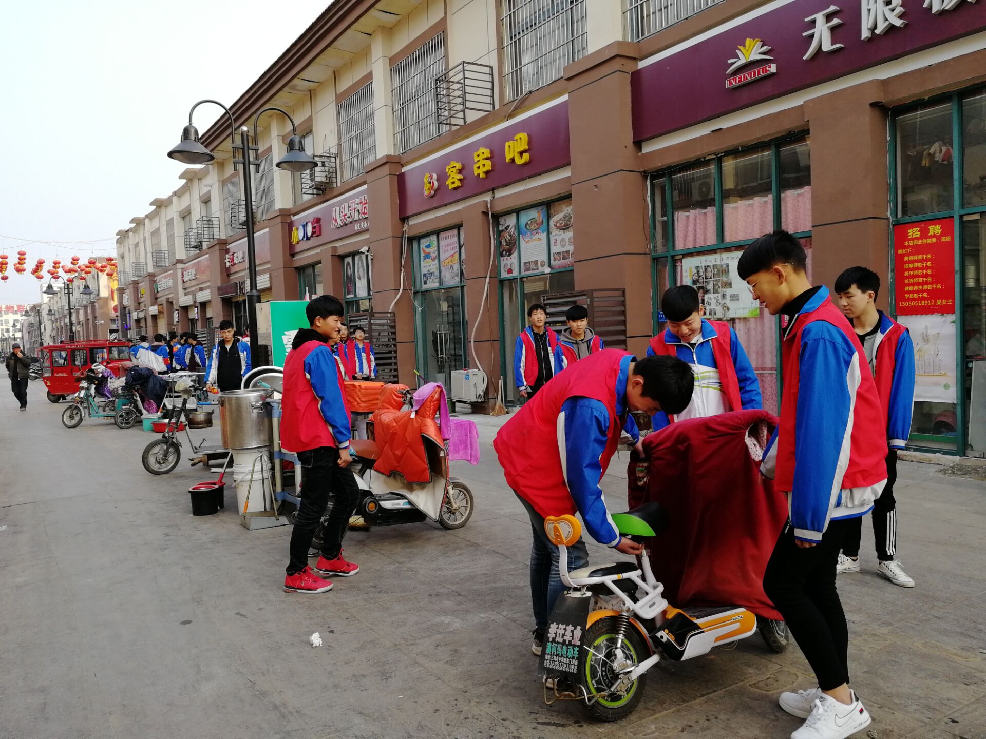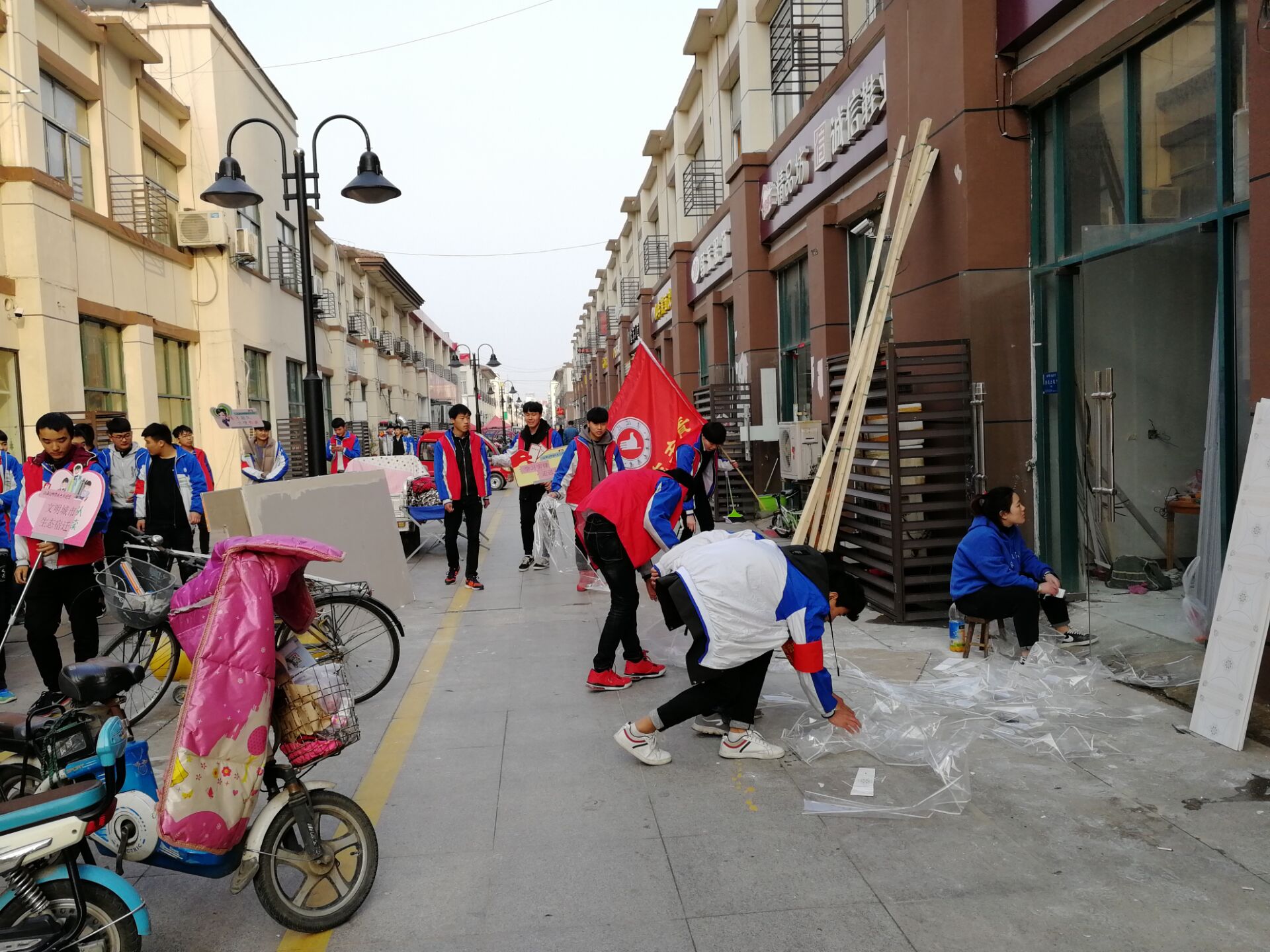 同学们积极踊跃,充分发扬并践行“不怕苦,不怕累”的雷锋精神,彻底清理社区卫生死角。看,他们有的捡拾烟头纸屑塑料袋,有的打扫卫生死角,有的擦拭着健身器材,有的在清理商铺门口的垃圾,有的在摆放车辆,有的帮扶老人过马路……晶莹的汗珠在同学们额头闪亮,雷锋精神在同学们心中生根发芽。周围市民纷纷为他们点赞。