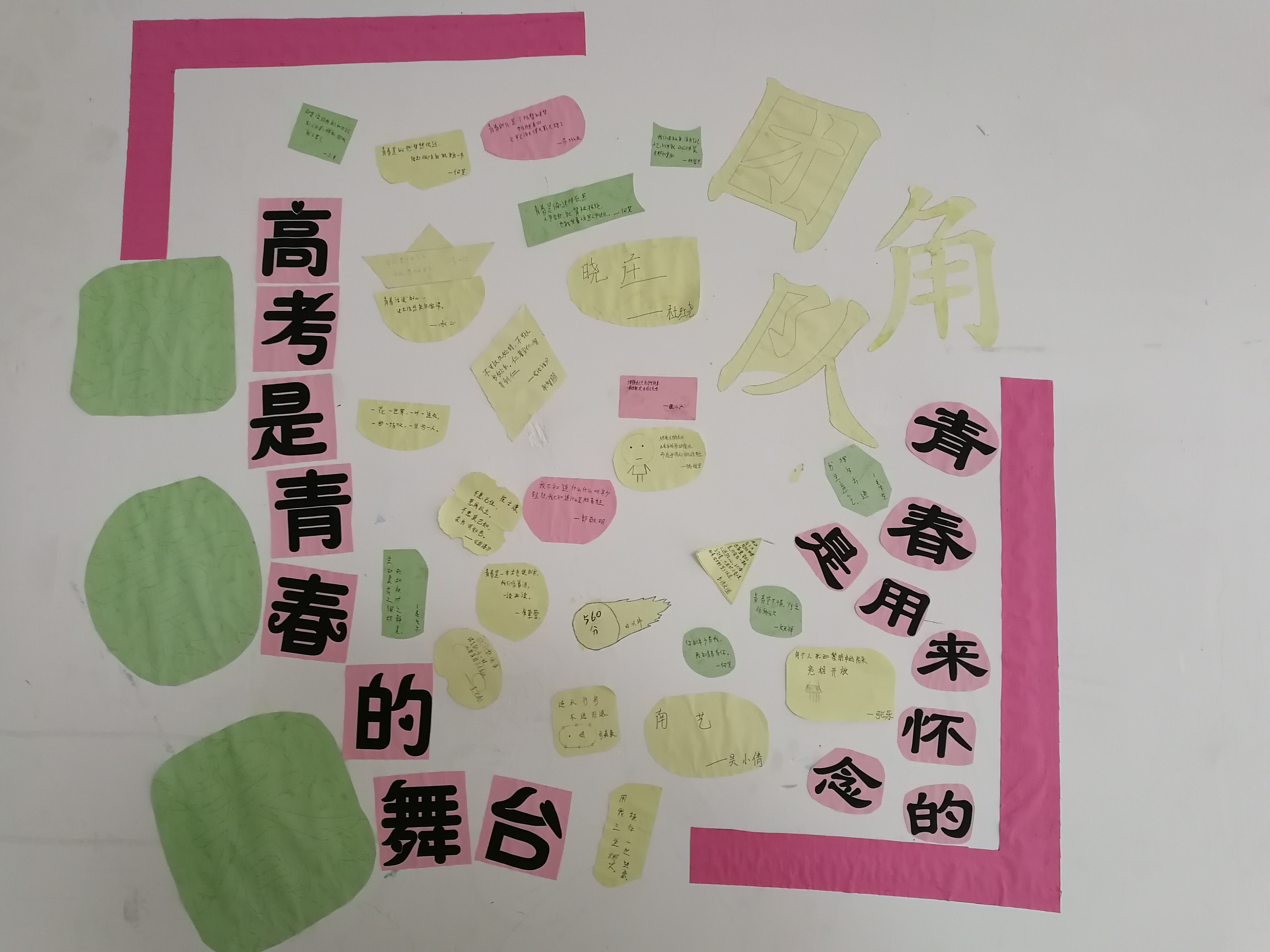 积极向上的文化氛围对高三学子的复习备考有重要的影响,同时,学生在自己动手参与的过程中,会更加爱护自己的班级,会自觉地认同班级的文化。