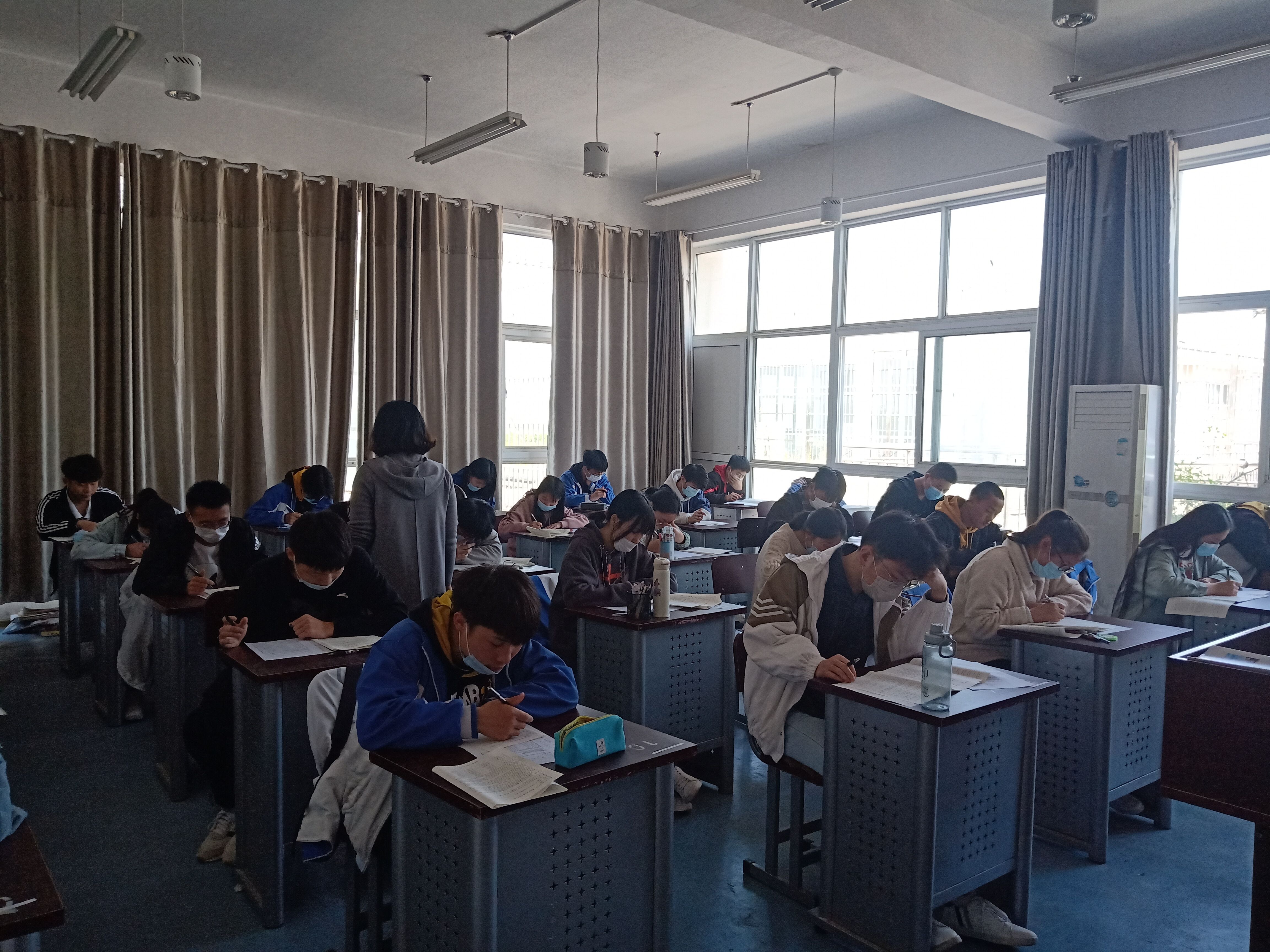 为了让高三学生能更好地适应高考环境,迎接2020年高考,综合高中部高三年级于4月28日至29日两天认精心组织“三模”统考。这次考试完全按高考模式,每场三十人、单人单桌单行。