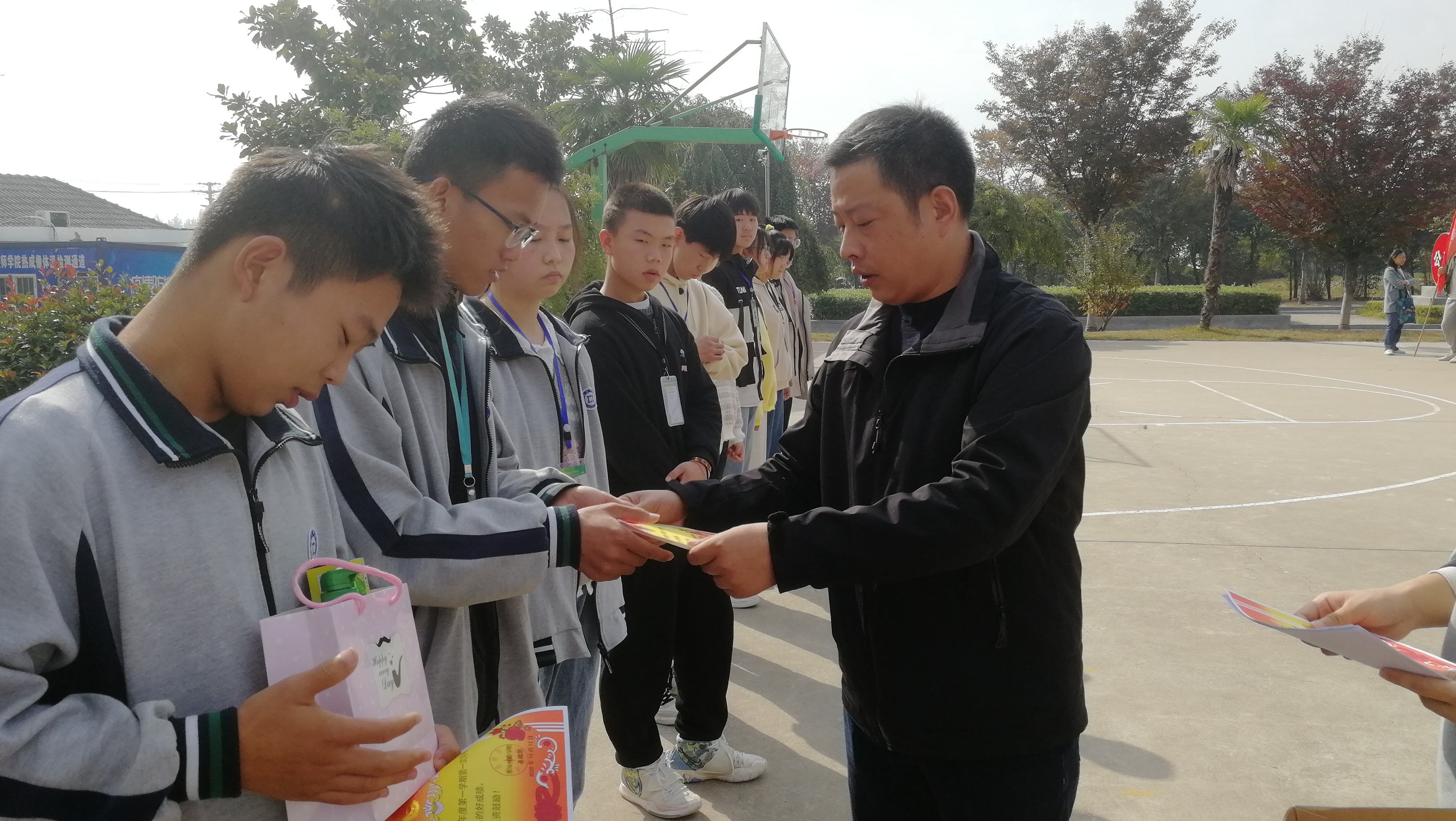基础部负责人赵东坡宣读《第一次月考成绩优秀学生表彰决定》,对沈淑匀、袁永琪等等38名同学进行表彰,并颁发了奖状及奖品,鼓励所有同学要相互学习,携手并进。