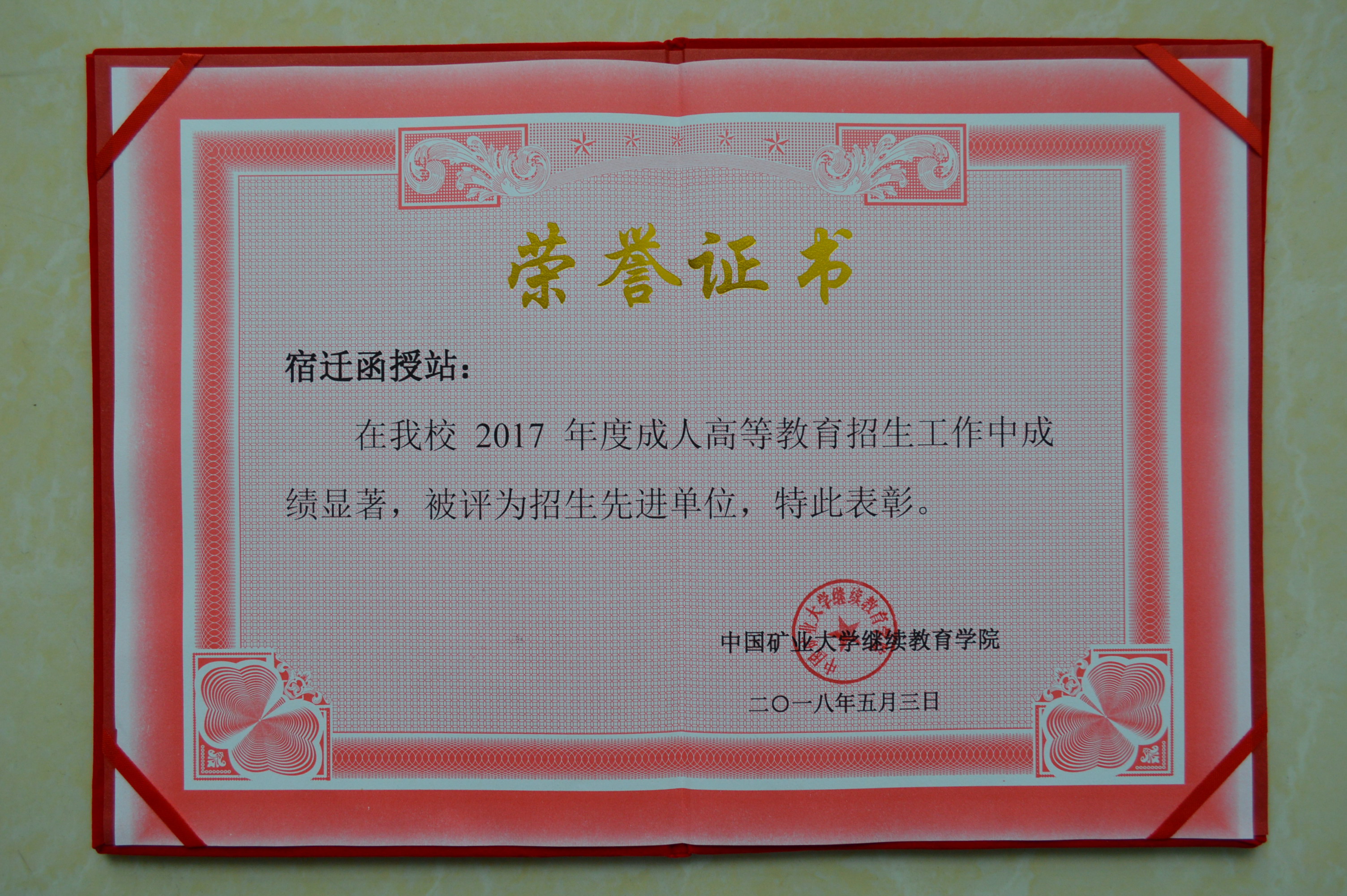 这是我院与中国矿大合作办学以来首次获此殊荣,我们将以此次获得的荣誉为新的起点,根据中国矿业大学 “依法办学、规范管理、提高质量”的指导思想,进一步完善各项管理制度,创新管理工作模式,确保函授教育工作健康稳定发展,使我院的成人教育工作再上新台阶。