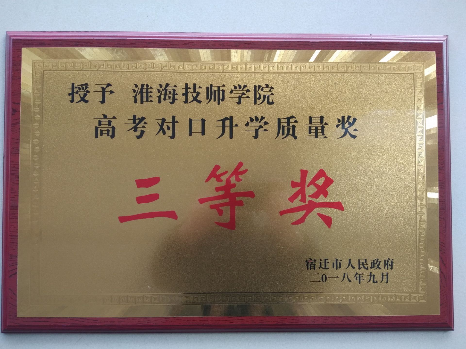 经过宿迁市政府对全市各高中教育教学质量及高考情况进行认真考核,我院2018年对口高考成绩突出,荣获宿迁市“2018年高考对口升学质量奖”。