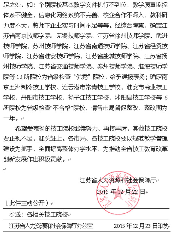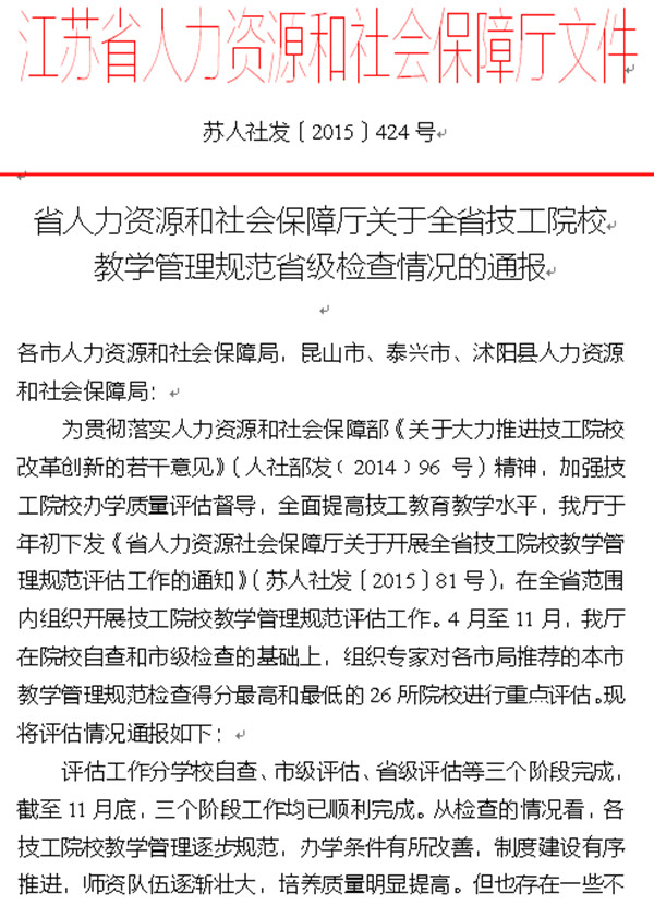 江苏省技工院校教学管理示范院校