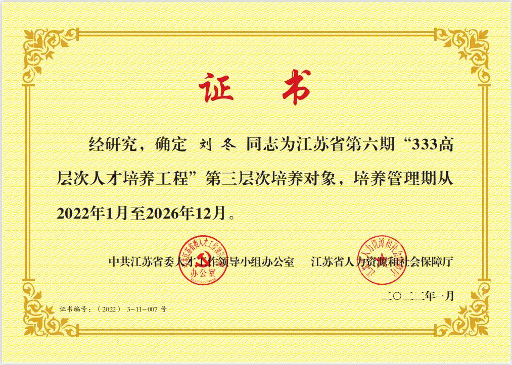 根据中共江苏省委人才工作领导小组办公室、江苏省人力资源和社会保障厅《关于确定江苏省第六期“333高层次人才培养工程”第三层次培养对象名单的通知》,我院推荐的刘冬、李宁2位老师成功入选省第六期“333高层次人才培养工程”第三层次培养对象,入选人数在全省同类院校中名列前茅。