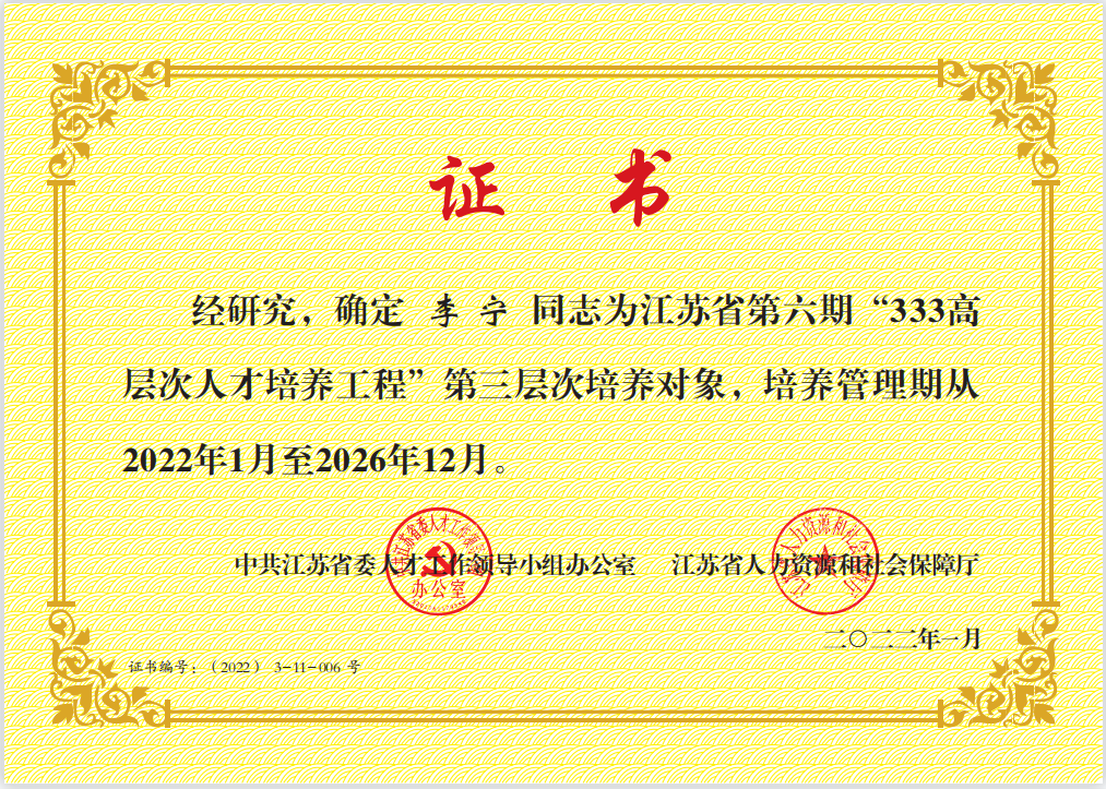 这是我院继宿迁市第二期“千名拔尖人才培养工程”培养对象之后,又一项规格层次高、申获人数多的人才工程。江苏省实施“333高层次人才培养工程”,旨在破除“五唯”倾向,选拔一批具有较强科学研究水平、原始创新能力和学术发展潜力的中青年优秀人才,深入推进高等院校人才分类评价改革,持续强化我省高层次人才队伍建设,拓宽高层次人才选拔渠道,为实现我省“十四五”经济社会发展战略目标提供人才保障。