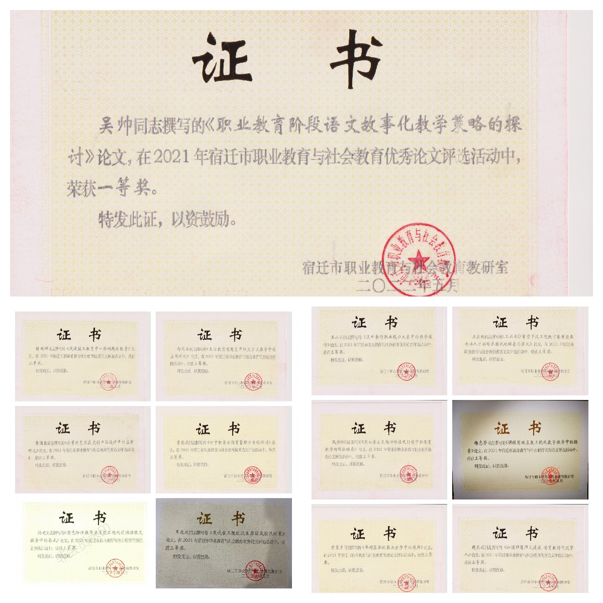 近日,2021年度宿迁市职业教育与社会教育优秀论文评选结果公布,我院共有13名教师获奖,其中一等奖1个,三等奖12个。