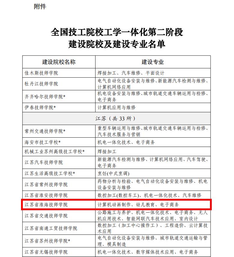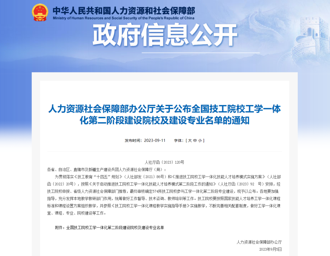 9月11日,人社部发布《关于公布全国技工院校工学一体化第二阶段建设院校及建设专业名单的通知》,我院成功入选第二阶段建设院校,其中计算机动画制作、幼儿教育、电子商务(跨境电商)三个专业入选建设专业。这是继2022年入选第一阶段建设院校以来第二次入选,至此我院入选人社部工学一体化建设专业共有五个。