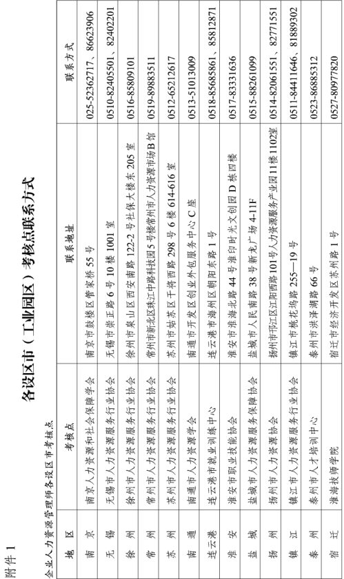 附件:1.各设区市(工业园区)考核点联系方式