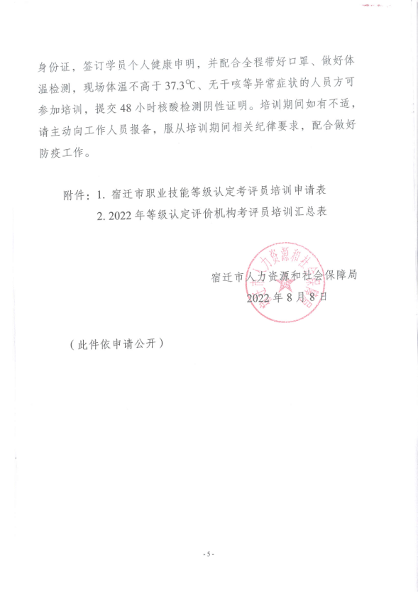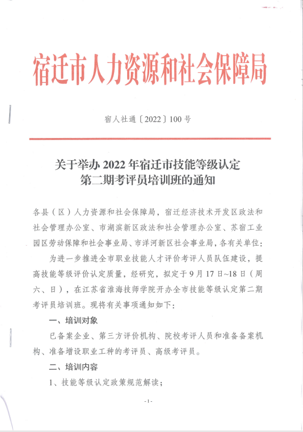 关于举办2022年宿迁市技能等级认定第二期考评员培训班的通知