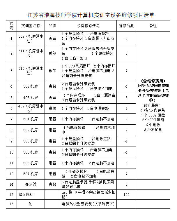 (一)项目名称:2021-2022学年第一学期计算机实训室设备维修