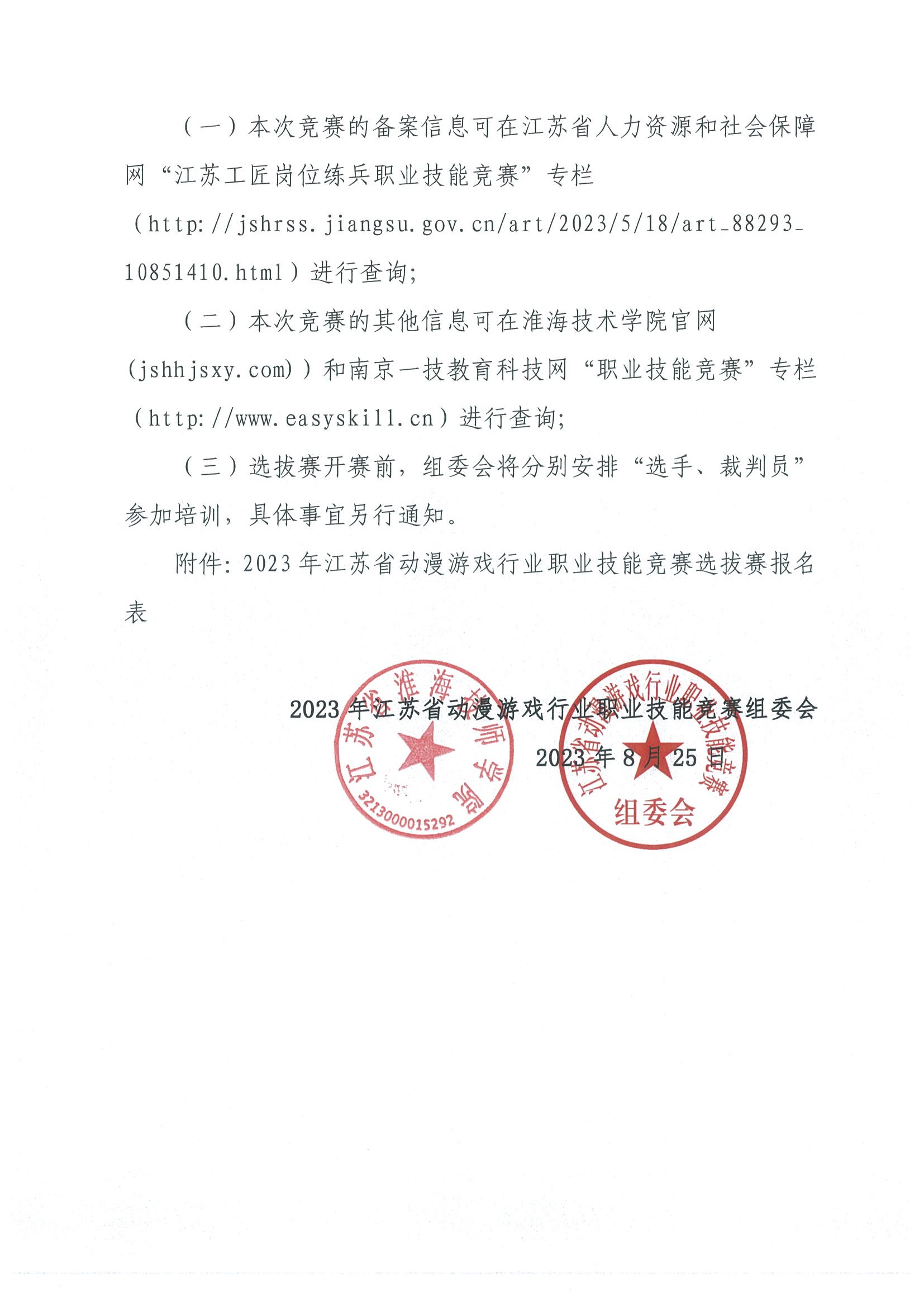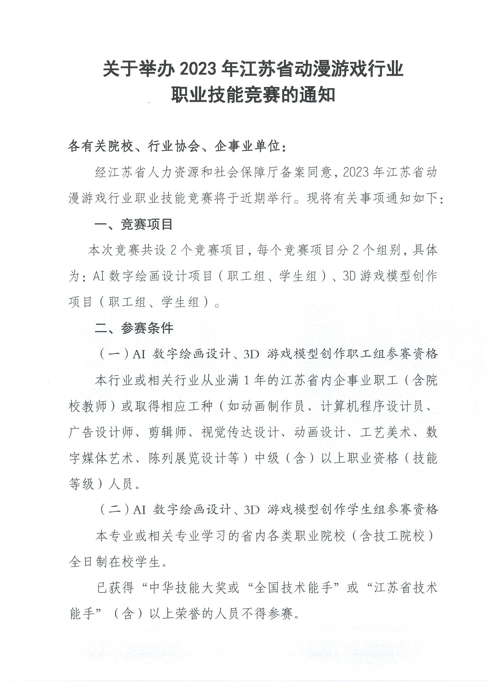 关于举办2023年江苏省动漫游戏行业职业技能竞赛的通知