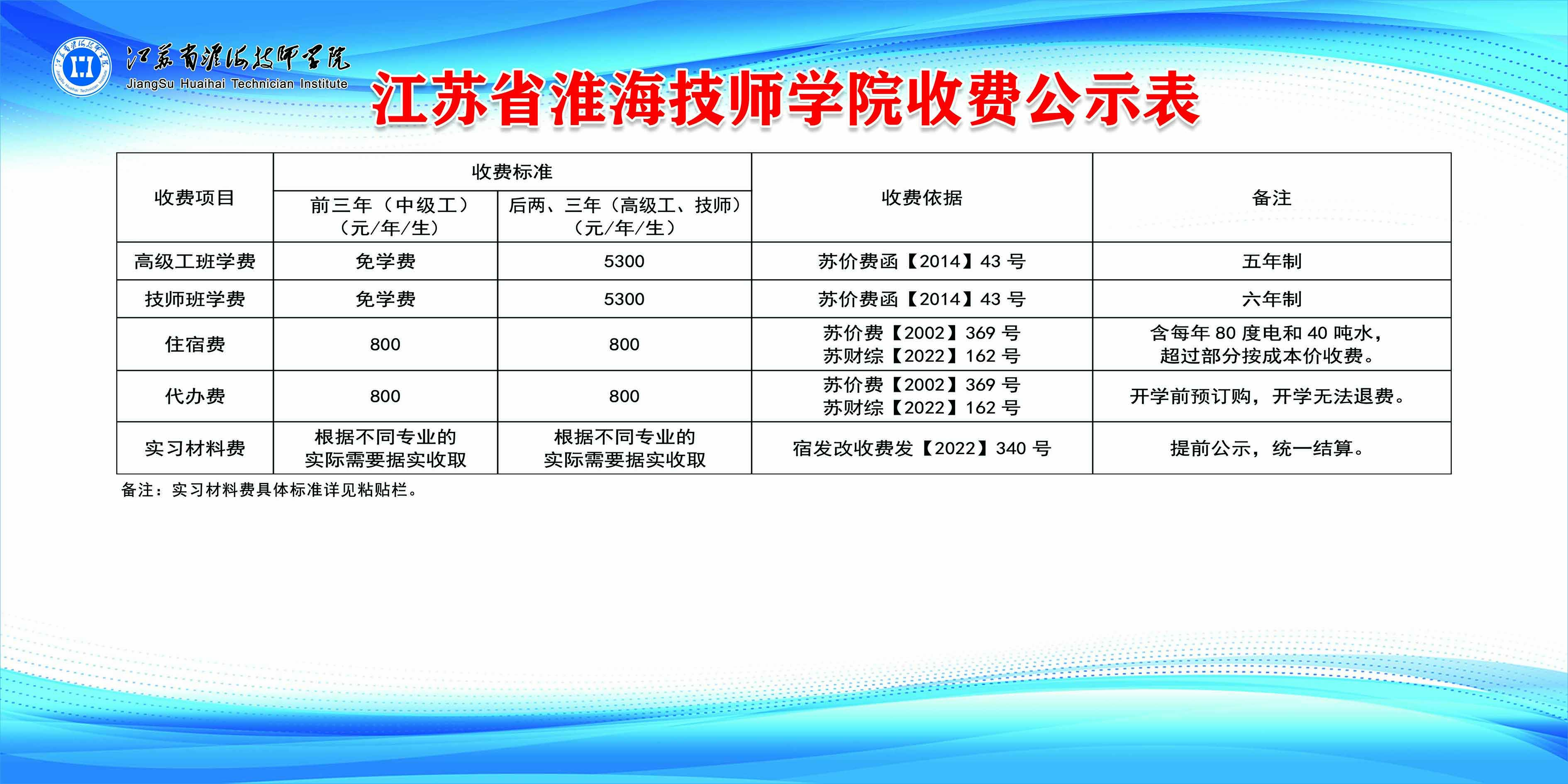江苏省淮海技师学院收费标准公示