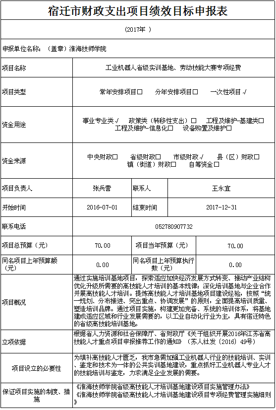 工业机器人省级实训基地、劳动技能大赛专项经费公示