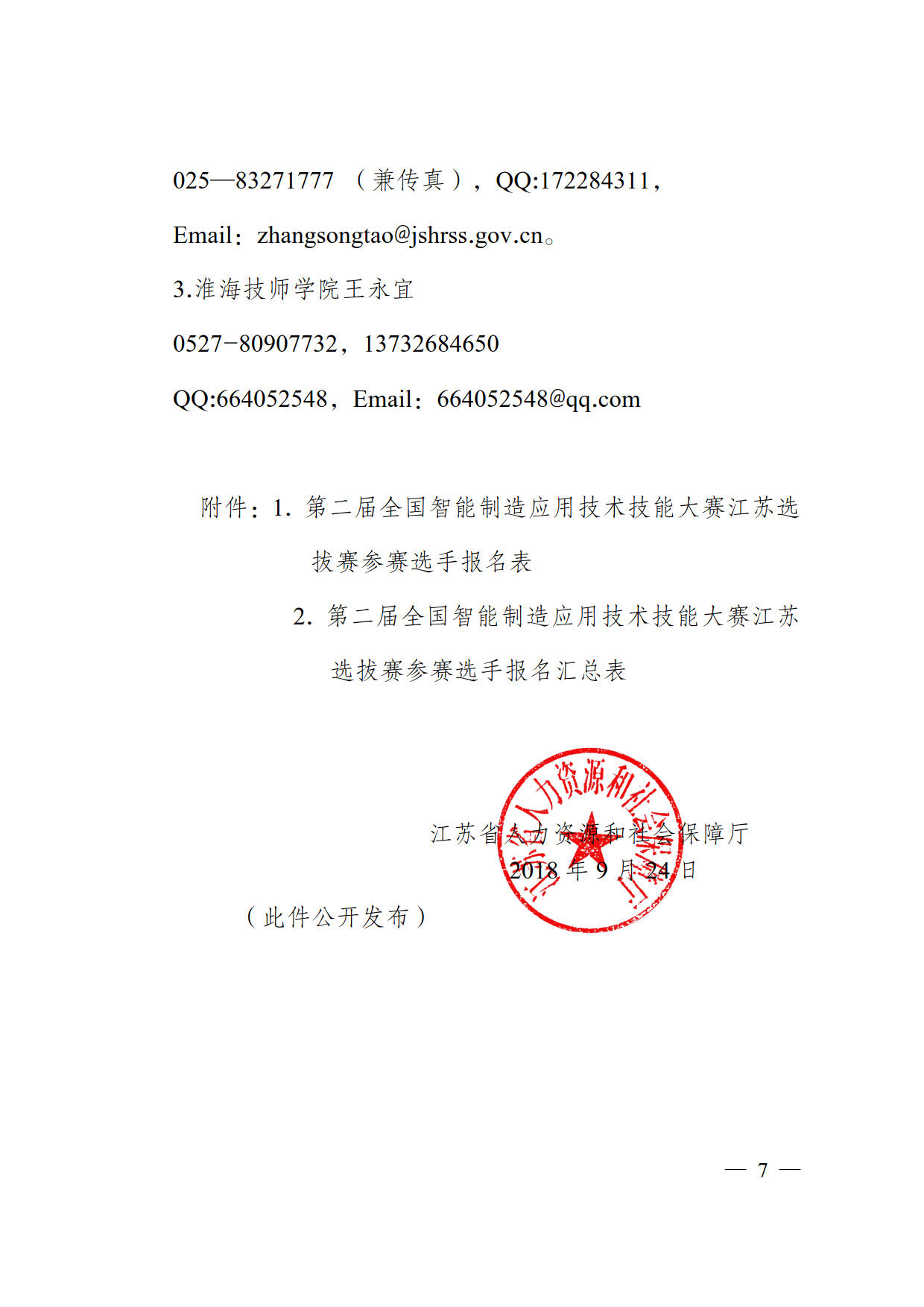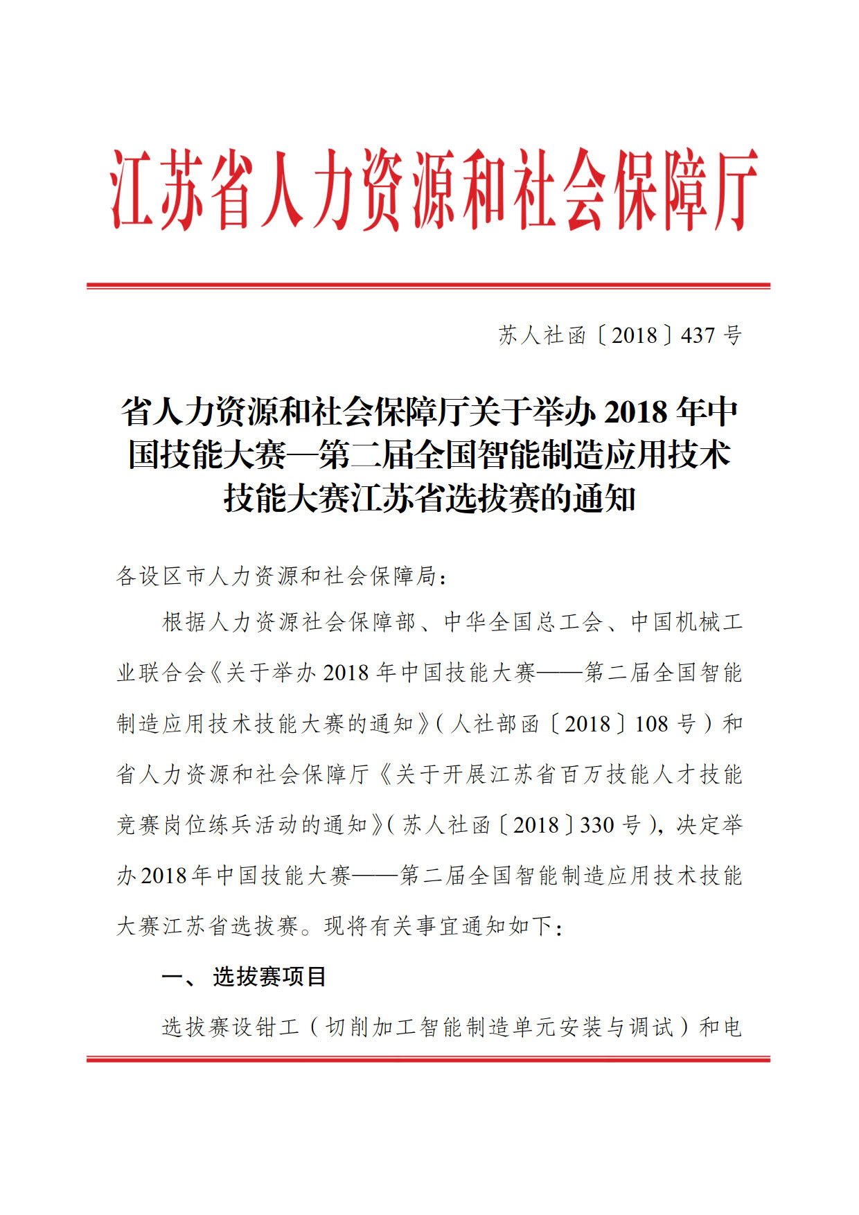 江苏省人力资源和社会保障厅关于举办第二届全国智能制造应用技术技能大赛江苏省选拔赛的通知