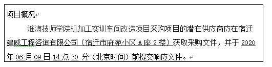 (二)项目名称:淮海技师学院机加工实训车间改造项目
