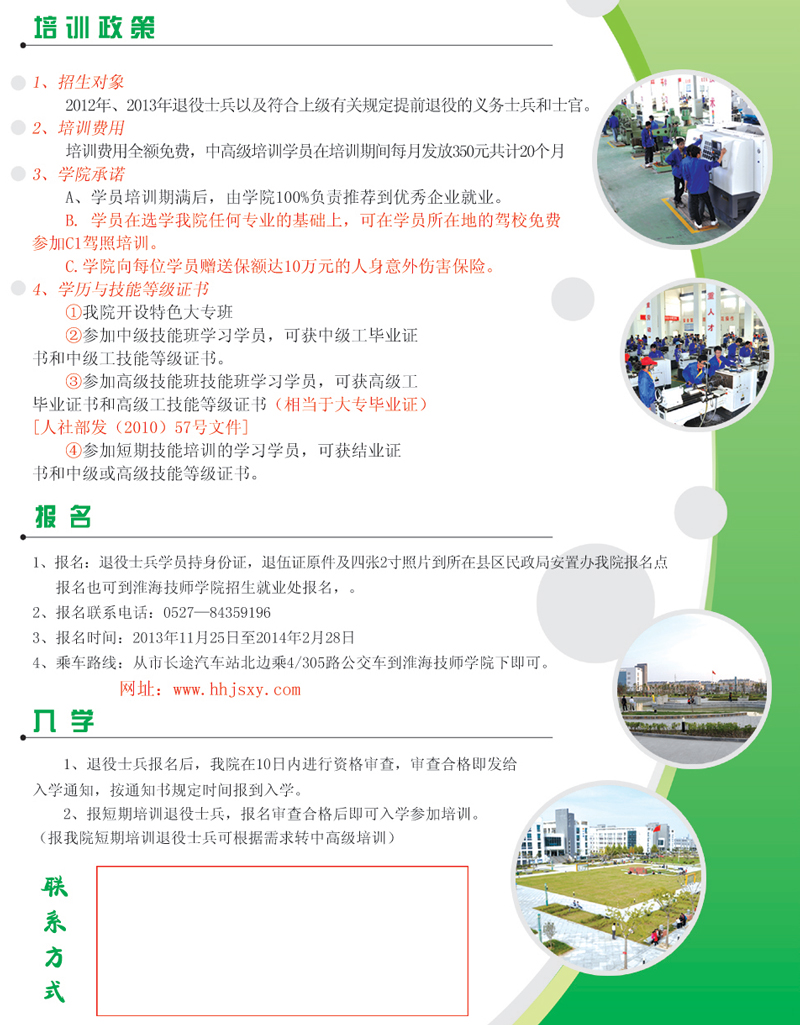 淮海技师学院2013年退役士兵招生简章