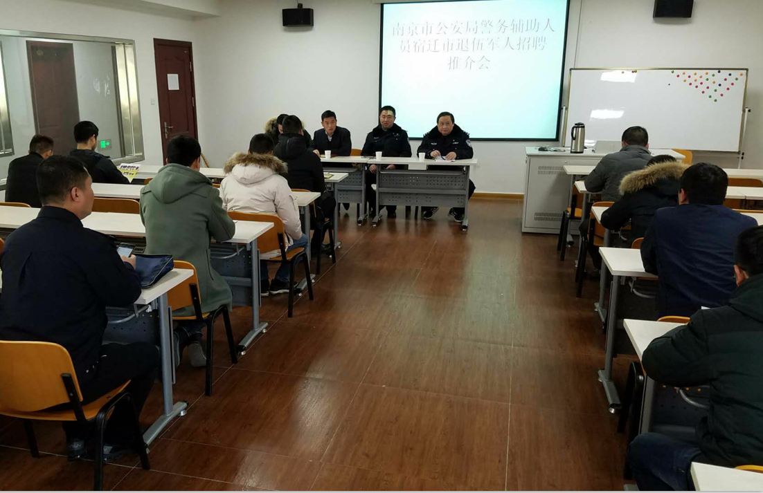 12月19日,“南京市公安局警务辅助人员宿迁市退伍军人招聘推介会”在我院举行,此次退伍军人专场招聘会是为了帮助解决我市退伍军人的就业问题。