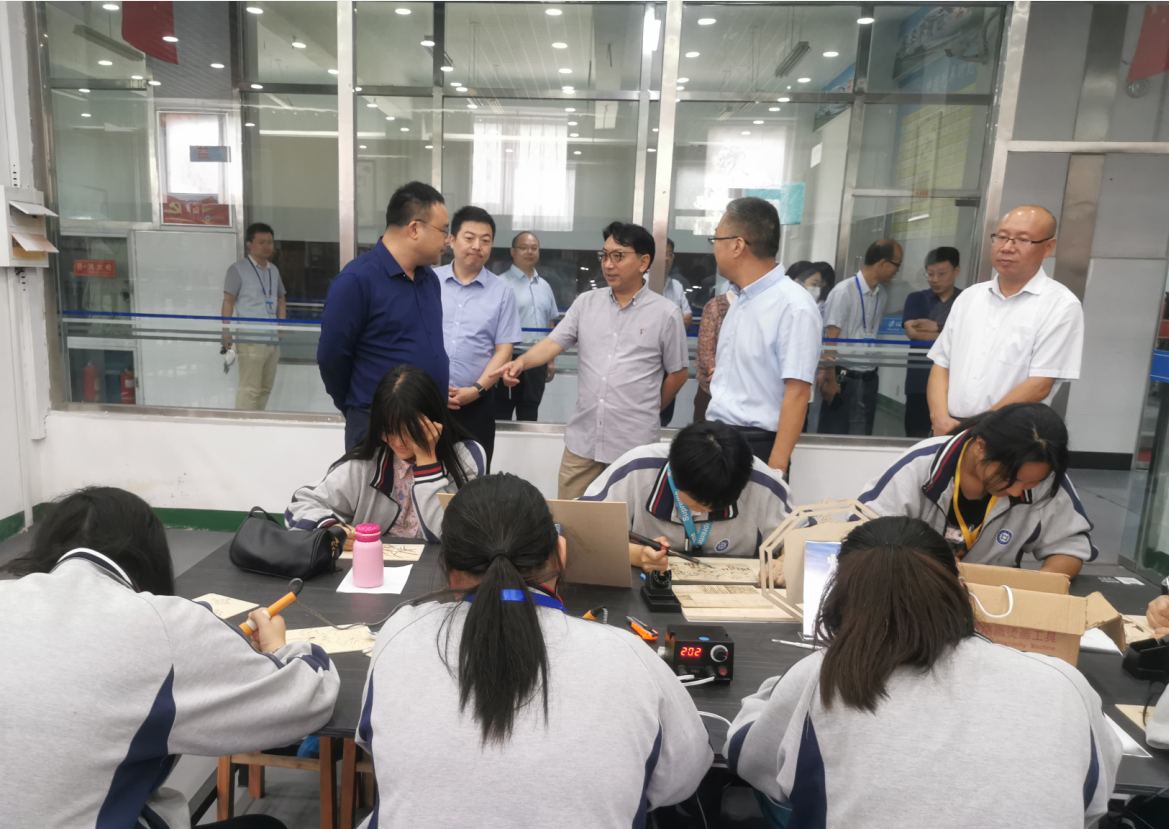 仇高尚一行参观了学院高铁乘务实训中心、电商实训中心、天岗湖锣鼓特色班、烙书烙画工作室、泥塑工作室、剪纸艺术工作室、数控加工实训中心、机械加工实训中心、国家级技能大师工作室、安全考核培训基地、世赛中国集训基地、机器人实训中心等地,听取了学院关于技能人才培训、技能人才评价、校企合作等工作情况汇报,对学院优美的校园环境、高端的硬件设施、先进的教学理念、鲜明的办学特色给予高度赞扬,对学院的技能人才培训工作给予了充分肯定,希望学院从新的形势出发,加大培训工作力度,为地方经济社会高质量发展提供技术技能人才支撑。