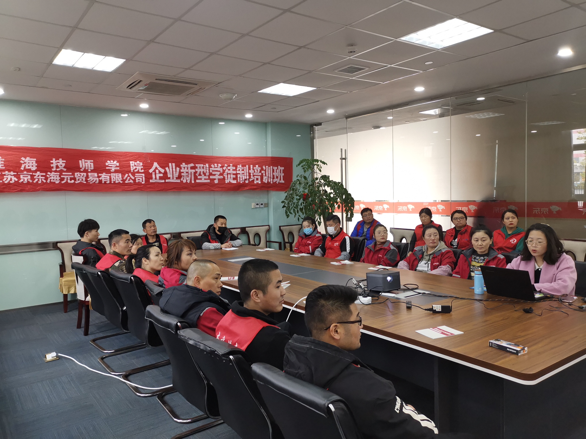 10月29日,我院与江苏京东海元贸易有限公司合作开展企业新型学徒制工匠精神培训,30多名新型学徒班学员参加本次培训。我院培训处选派优秀老师送教进企业,绘声绘色为他们上了一堂精彩的工匠精神课。