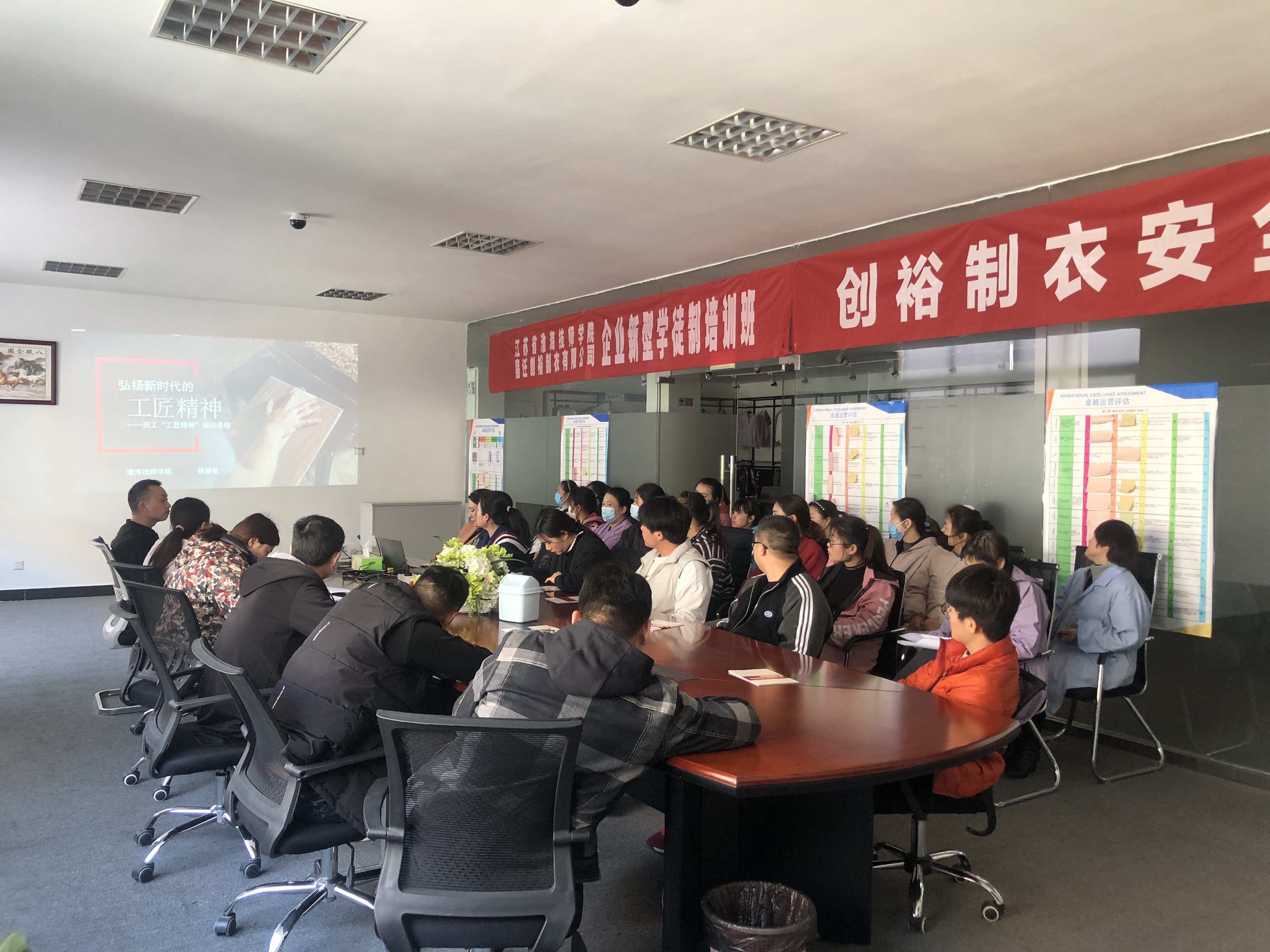 3月11日,我院与创裕制衣有限公司合作开展的2021级企业新型学徒制培训按教学计划进行“工匠精神”课程教学,30余名学徒参与本次培训。