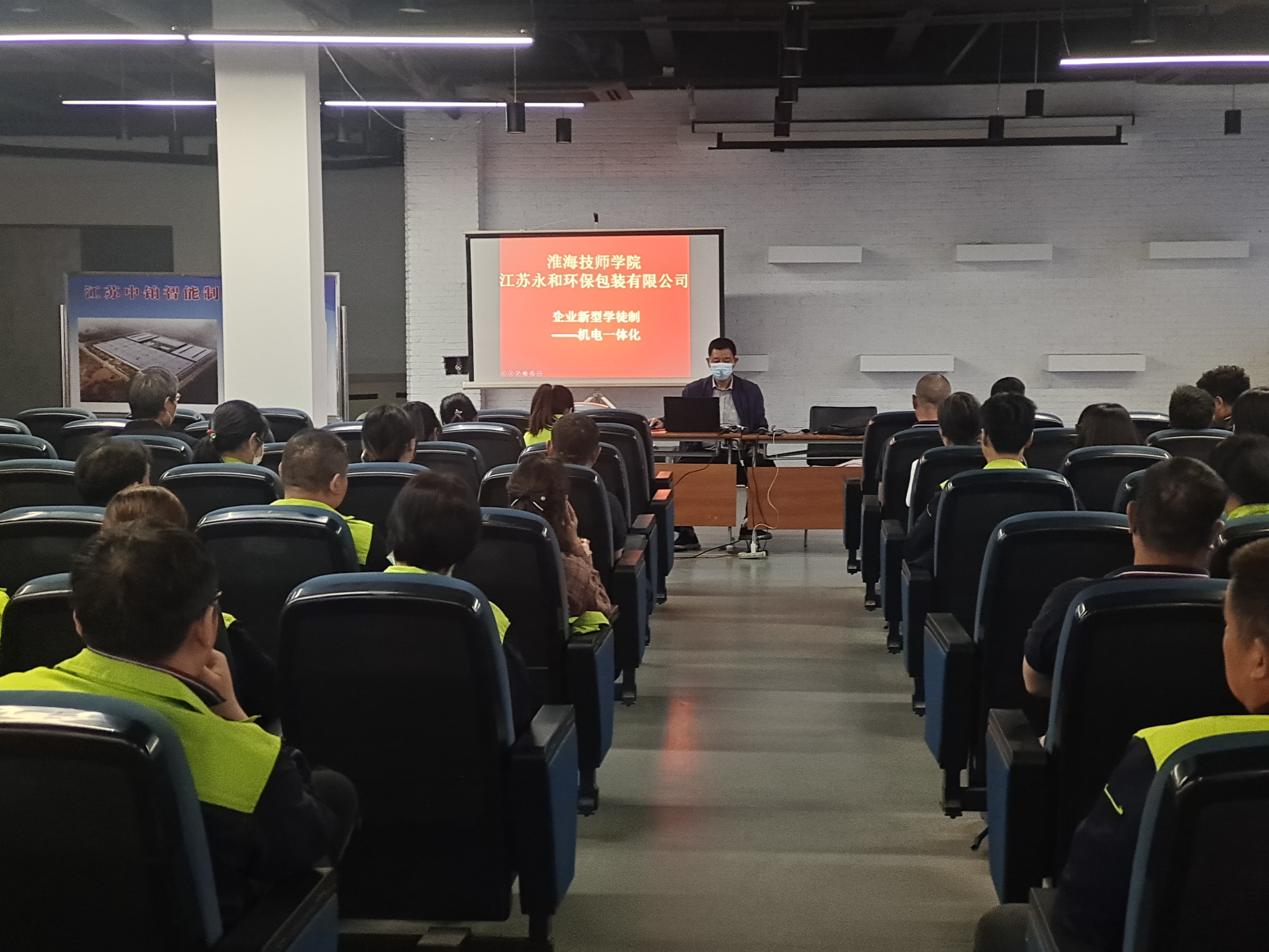 5月26日,我院与江苏永和环保包装有限公司合作开展企业新型学徒制机电一体化(电工)专业培训,40余名学员参与本次培训