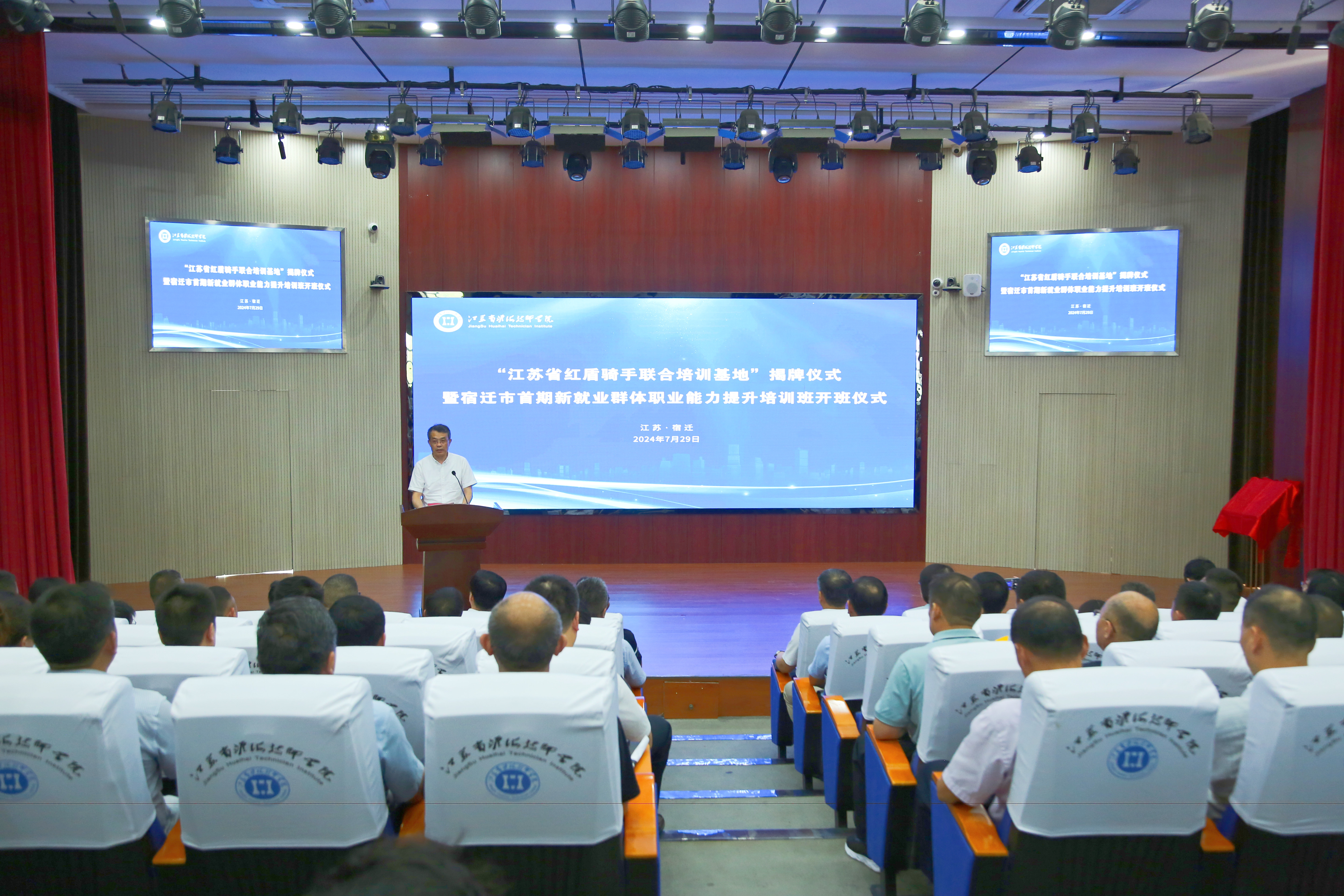 “江苏省红盾骑手联合培训基地”是我院联合宿迁市市场监督管理局、中共宿迁市委社会工作部、宿迁市人力资源和社会保障局、宿迁市妇女联合会,联合打造的江苏省首家新就业群体职业技能培训基地,旨在构建上下联动、条块结合、左右协同的综合培训工作体系,为网约配送员提供党务知识、职业技能、职业指导、创业培训、急救技能、食品安全、家庭教育、和谐婚姻经营等综合培训服务,进一步提升新就业群体获得感、幸福感。