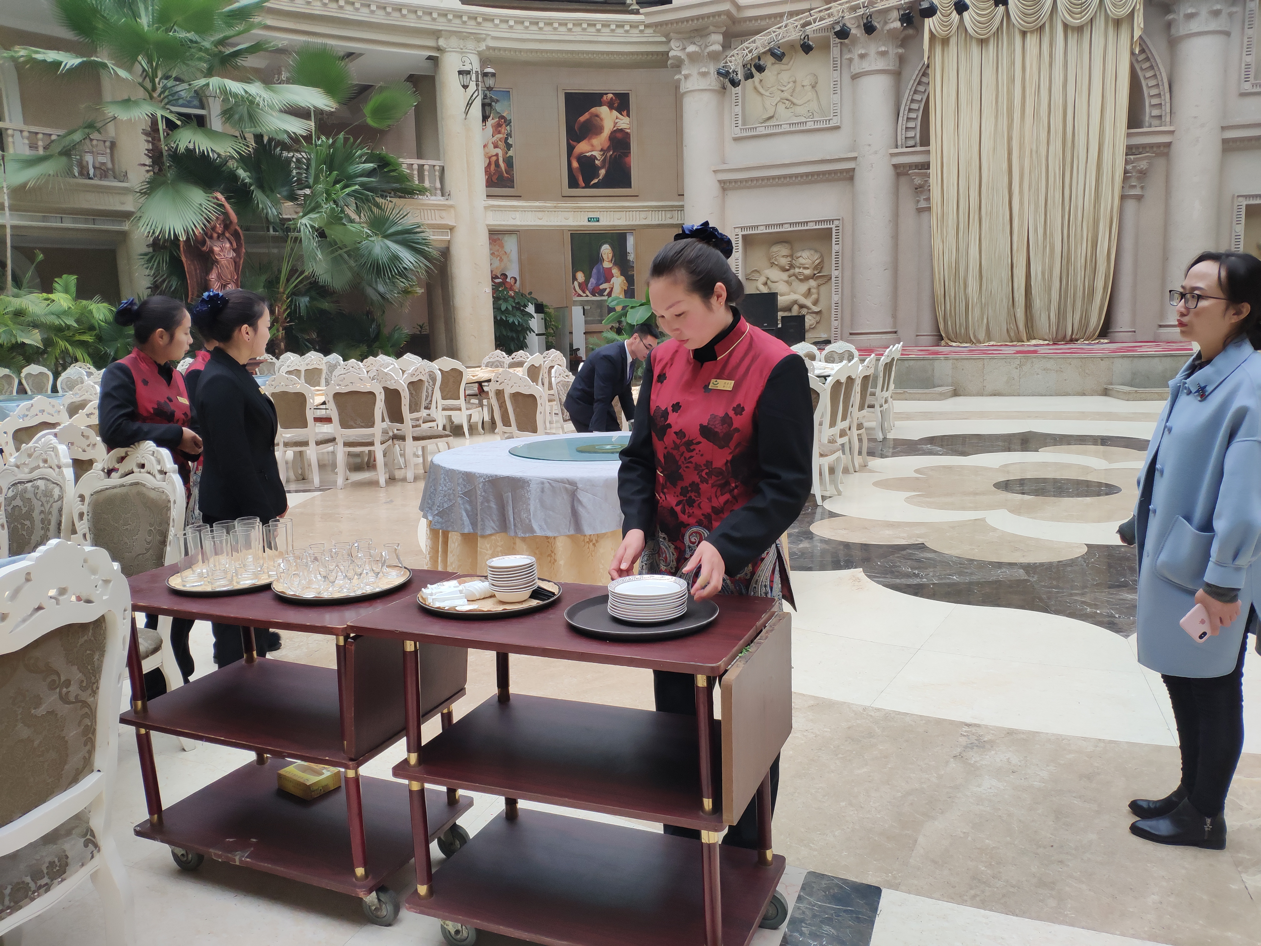 近日,我院与世界之窗大酒店合作开展了餐厅服务员职业技能培训。12月29日,培训班在该酒店开班。本次培训采取理论授课与技能指导相结合的方式,重在技能操作的训练。