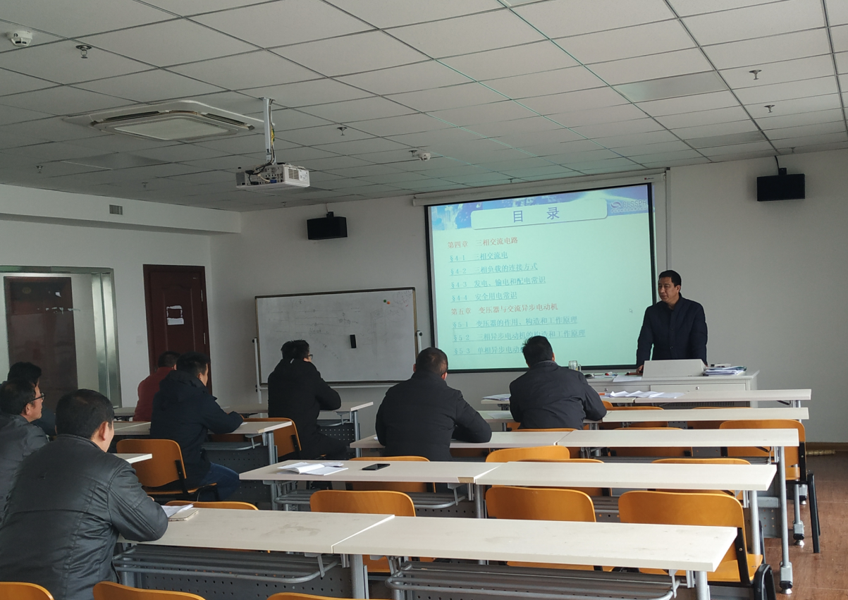 主要从理论知识、技能操作等方面进行培训。理论基础课在学院行知楼6楼上课,技能实操课在机器人实训中心二楼上课。为做好本次高级工培训工作,我院提前制定教学计划,并且安排电工专业技师进行授课。培训根据国家职业资格考核标准,主要设置了电工职业道德、电工安全操作规程、电工电子基础、电子元器件与识图、工厂动力控制线路的安装和调试、电动机相关知识等课程。
