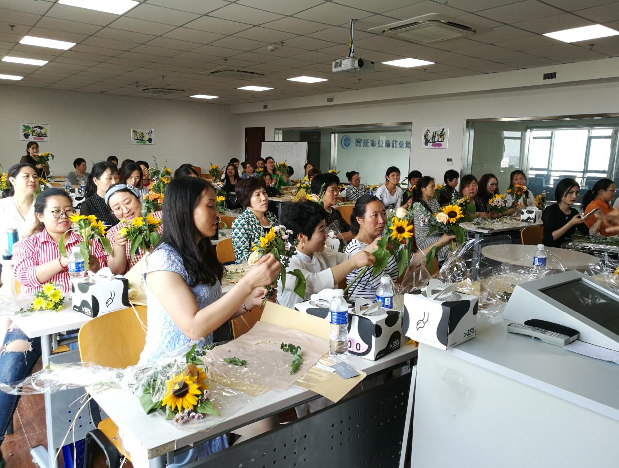 本期培训内容为中式面点制作和插花。开班仪式结束后,学员们积极的投入到培训课堂中。在插花培训现场,培训教师首先向学员们介绍各种学习材料的用处。随后,讲解基本的花艺知识,亲手演示了几款基础花艺造型,耐心为学员解答疑问。学员们学习热情高涨,从装饰手法到花材的使用方法都提出了各式各样的问题,培训课上互动频繁。最后,学员们在老师的指导下修剪、整枝、弯曲花束……制作出了属于自己的花艺作品,现场热情极为高涨。