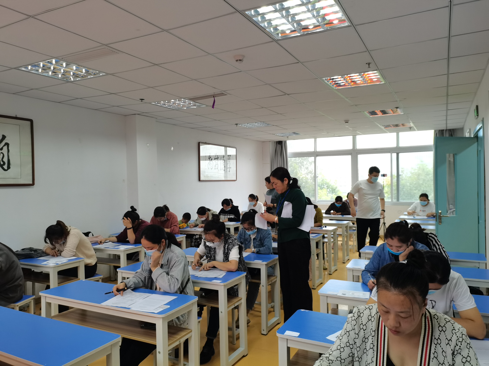 参加保育师考试的学员多为家庭主妇,经常会有学员带着小宝宝来参考试。为了能使学员专心考试,一般会提前在考场附近准备专门的房间,里面有一些玩具和零食,并设有专人在考试期间带着宝宝们在里面玩耍,直到考试结束。