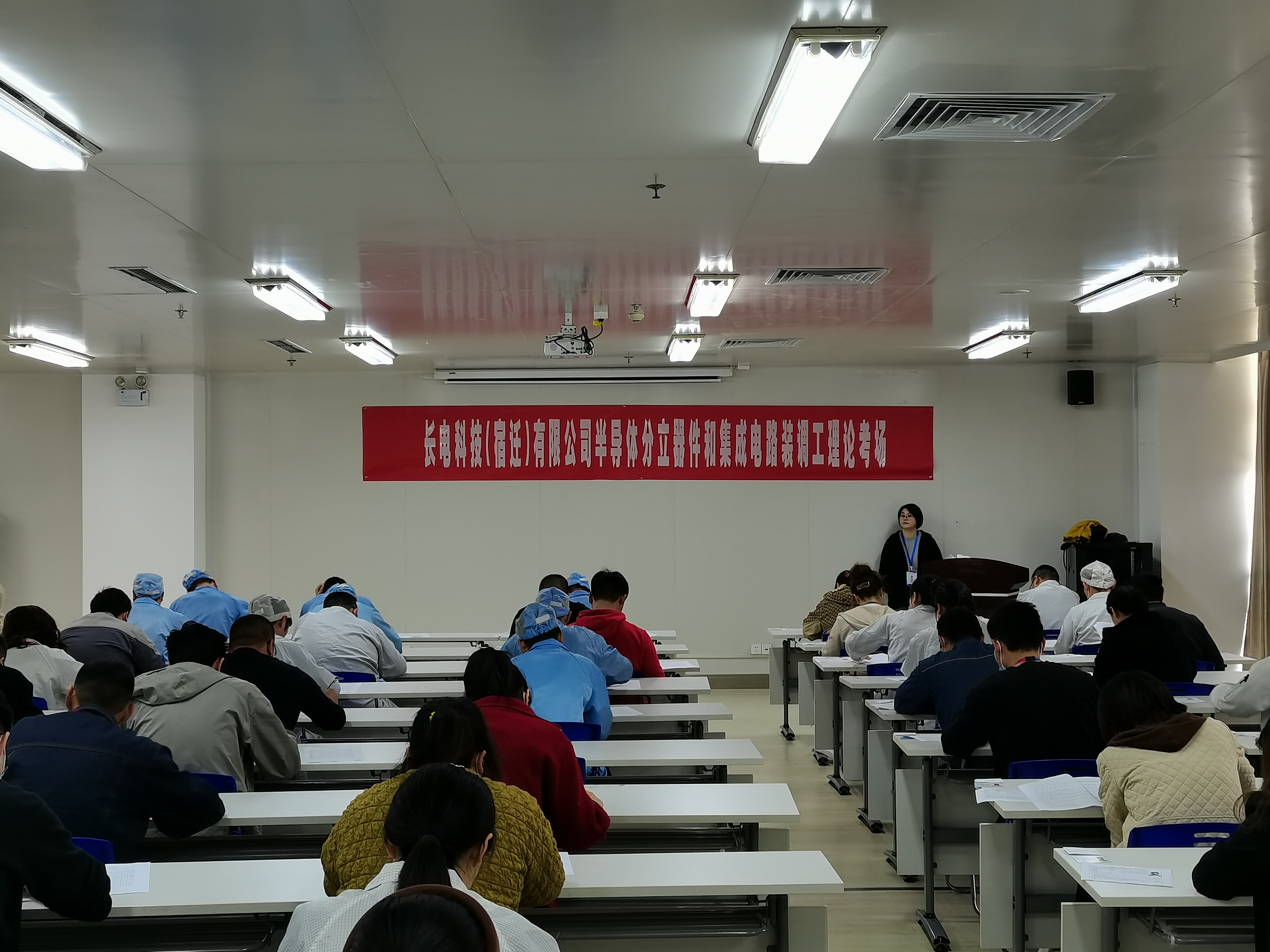 本次考核由我院培训处牵头联合长电科技(宿迁)有限公司共同申报备案成功企业自主评价,是长电科技(宿迁)有限公司获批自主评价平台后的首次鉴定。考核分为理论考试和技能实操两部分,理论考试主要考察半导体器件分立与集成电路的相关知识,实操考核严格按照企业工艺流程进行,参加考核的学员都能在规定时间内规范操作完成半导体器件分立与集成电路的装调。